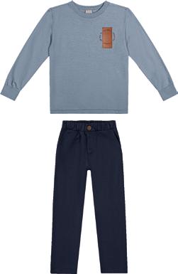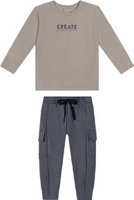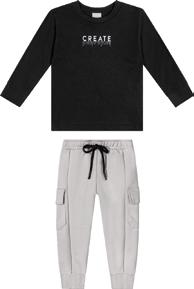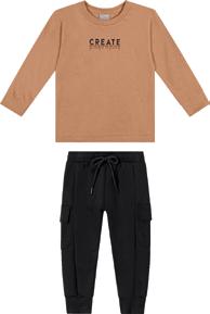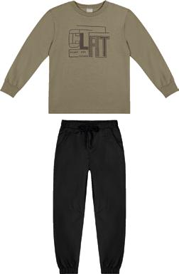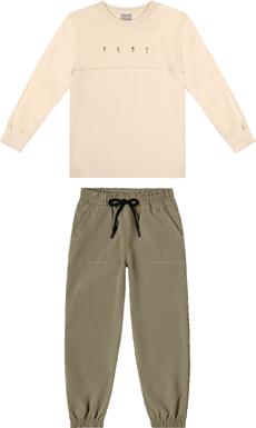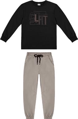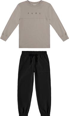 Conjunto com Camiseta em Meia Malha e Calça em Moletinho