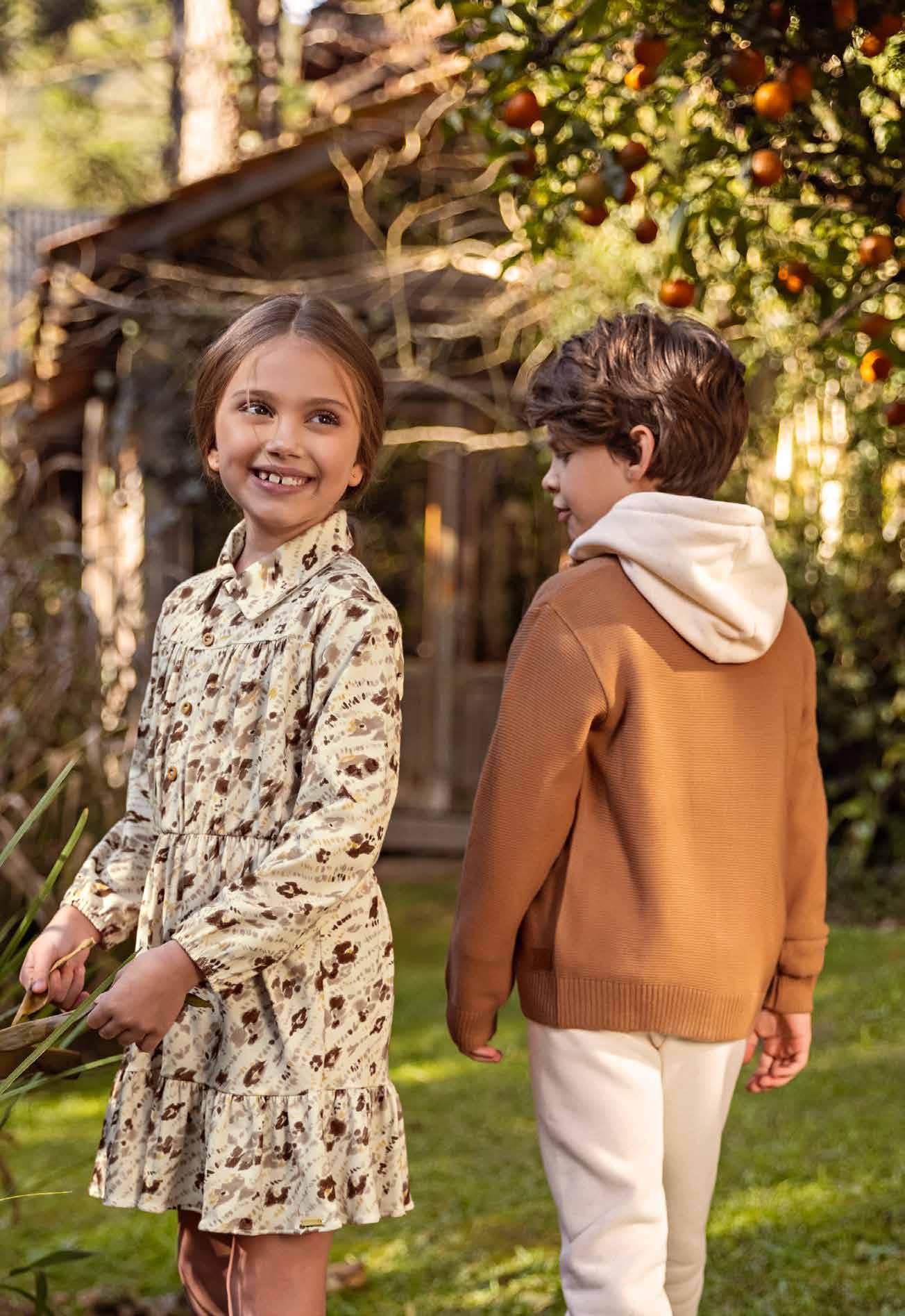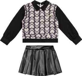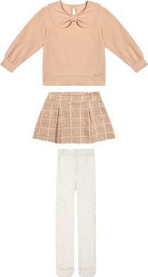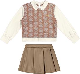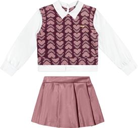 Conjunto com Blusa em Cotton Leve e Vestido em Moletom Jacquard sem Felpa Cotton Blouse and Jacquard Sweatshirt Dress without Fleece Set Conjunto con Blusa en Algodón y Vestido en Moleton Jacquard sin Friza