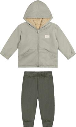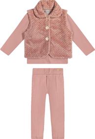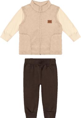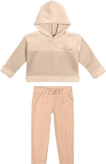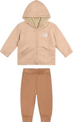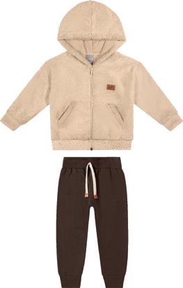 Conjunto com Jaqueta em Pelo Dublado Suede e Calça em Moletom Felpado