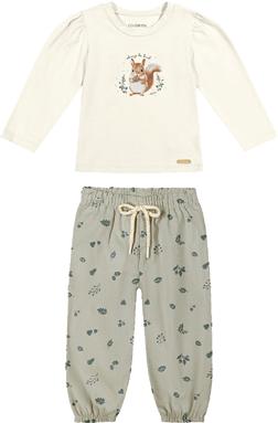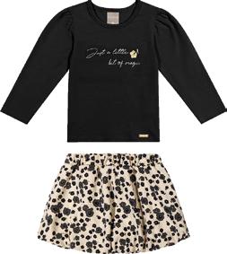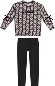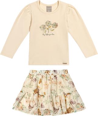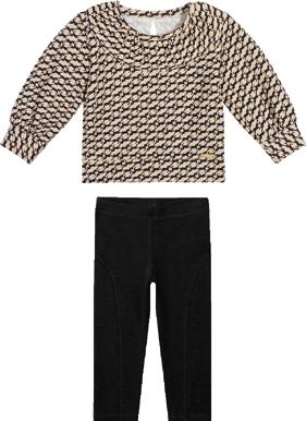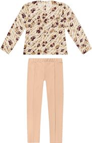 Conjunto com Blusa em Malha Linho Sarjada Estampada e Calça Legging em Cotton Leve