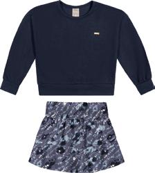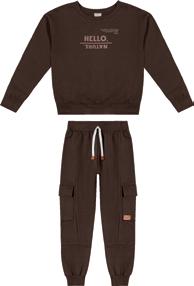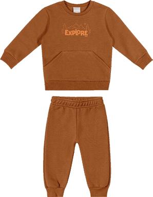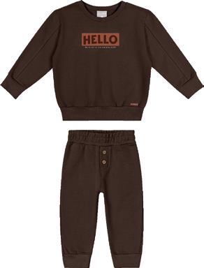 Conjunto com Blusão em Molecotton Felpado e Calça em Molecotton Felpado Estampado