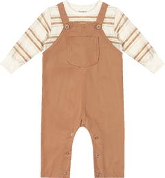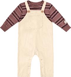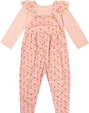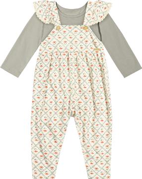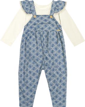 Conjunto com Body em Cotton Leve e Jardineira em Malha Linho Sarjada Estampada Cotton Bodysuit and Printed Linen Twill Overalls Set