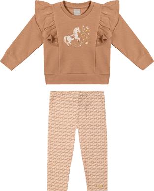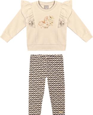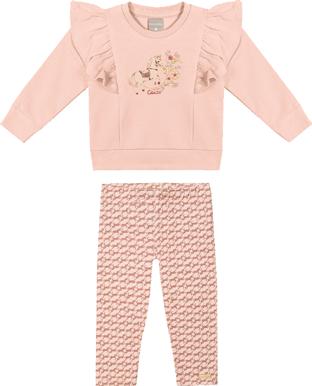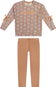 Conjunto com Jaqueta em Molecotton Felpado Estampado e Calça Legging em Molecotton Felpado