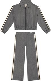 Conjunto com Jaqueta e Calça em Molecotton Canelado Sem Felpa Sweatshirt Jacket and Ribbed Sweatpants without Fleece Conjunto con Chaqueta y Pantalón en Moleton Acanalado sin Friza P - M - G / 01 - 02 - 03