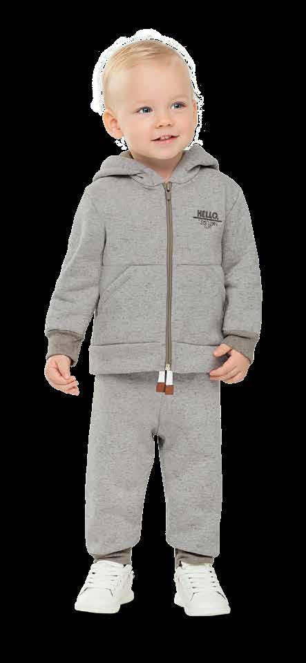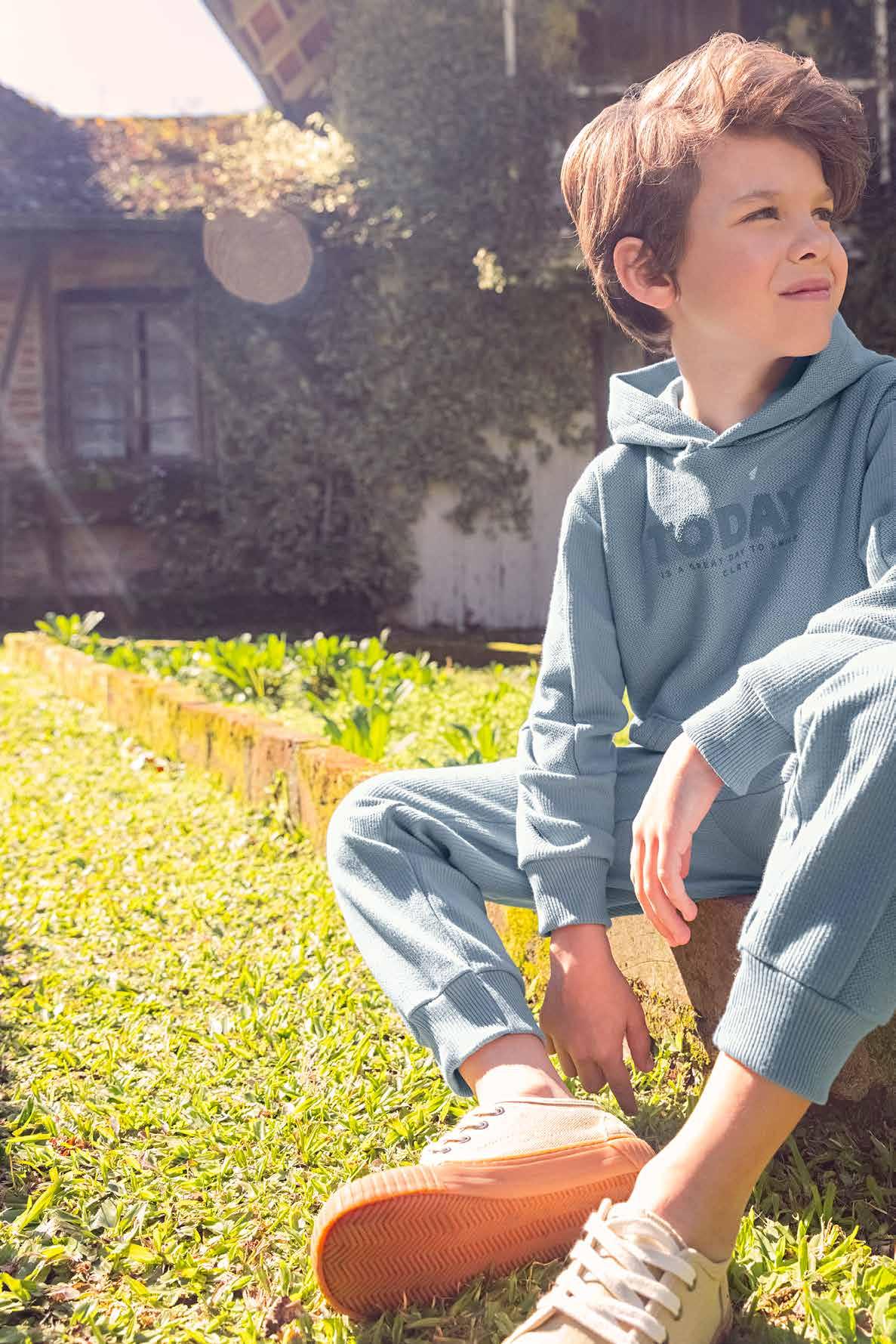 Conjunto com Blusão e Calça em Moletom Jacquard sem Felpa Jacquard Sweatshirt and Sweatpants Without Fleece Set Conjunto con Buzo y Pantalón en Moleton Jacquard sin Friza