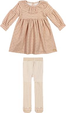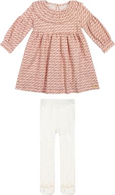 Cotton Bodysuit and Printed Cotton Velvet Cotele Dress Set