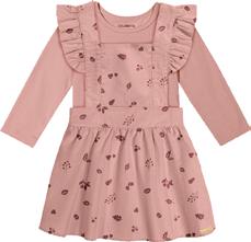 Conjunto com Body em Cotton Leve e Vestido em Veludo Cotelê Estampado