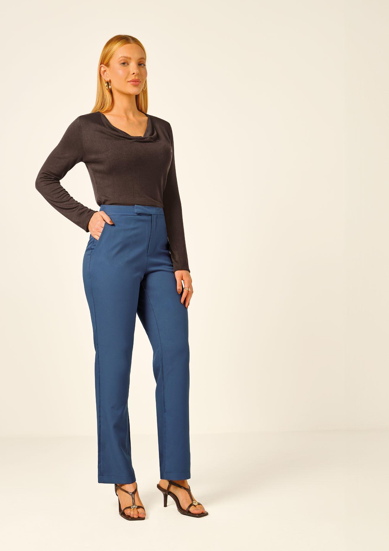 184424 Calça Reta em Sarja com Elastano