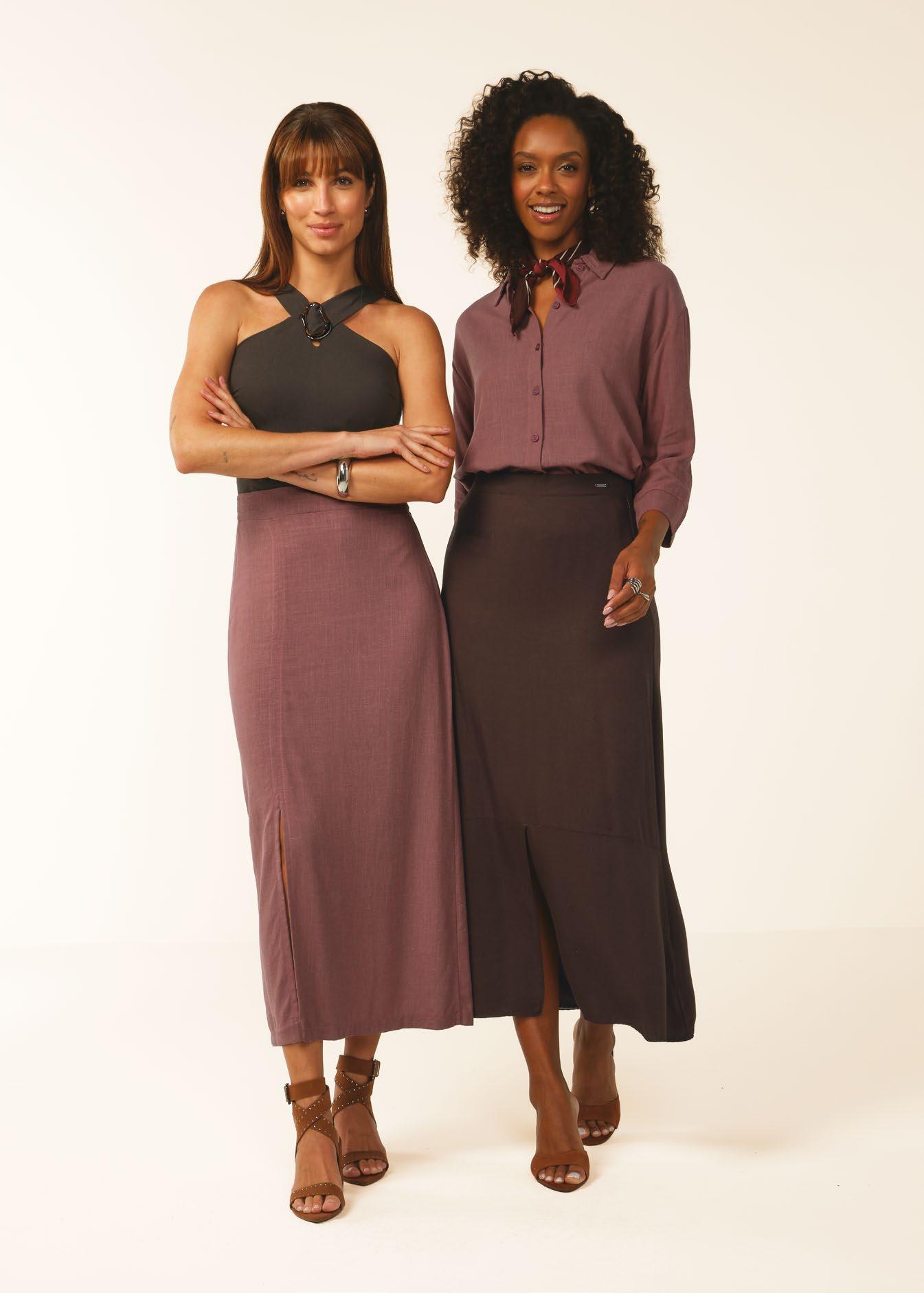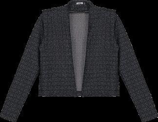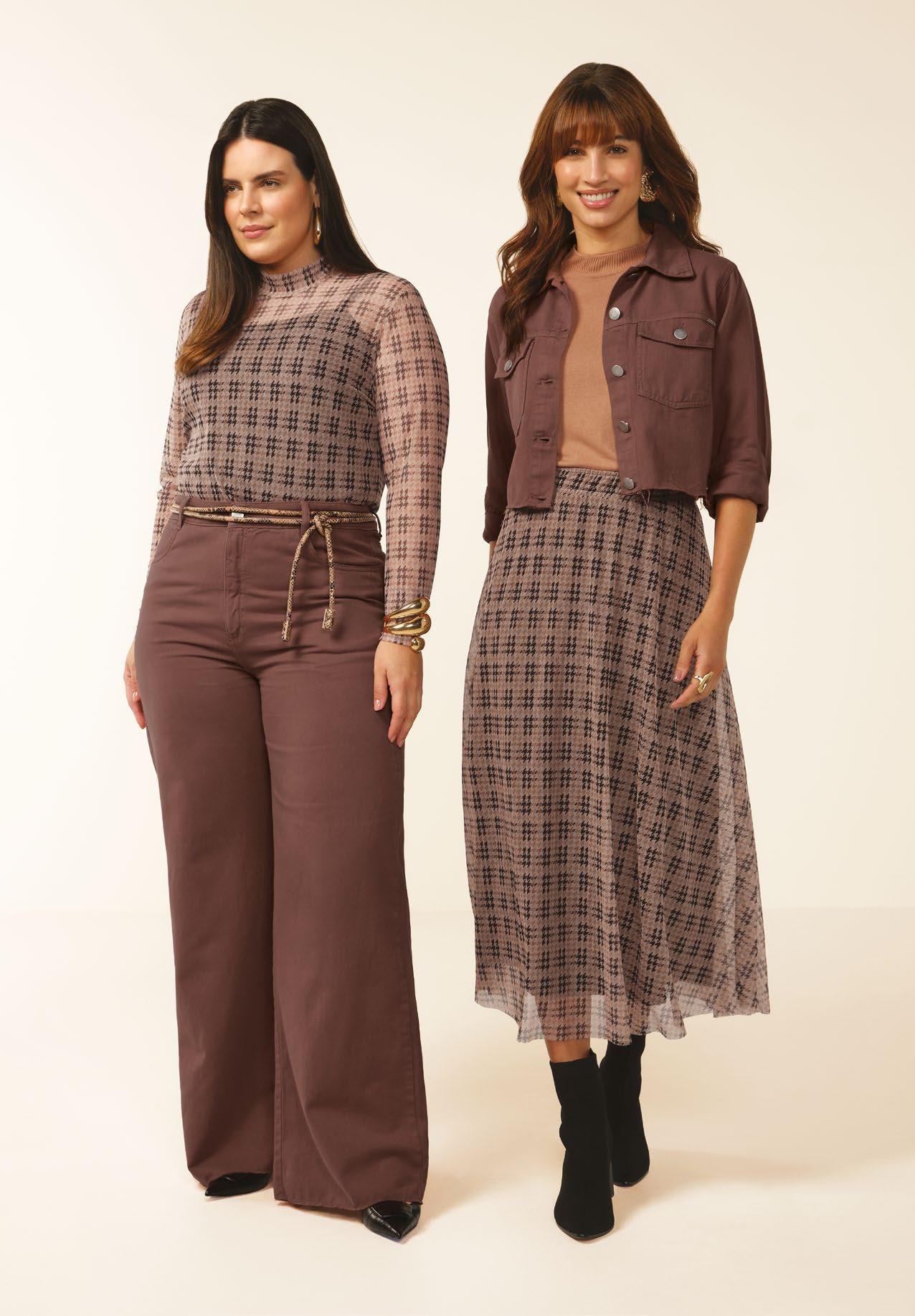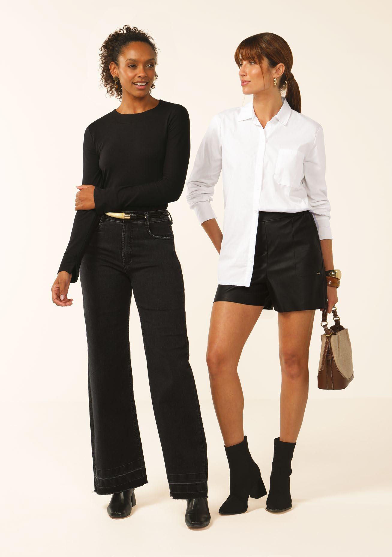 As retilíneas aparecem em golas, punhos e barra. Com textura marcada e estruturada valorizam o design e acabamentos das peças. Um toque moderno para compor looks exclusivos e diferenciados.