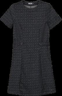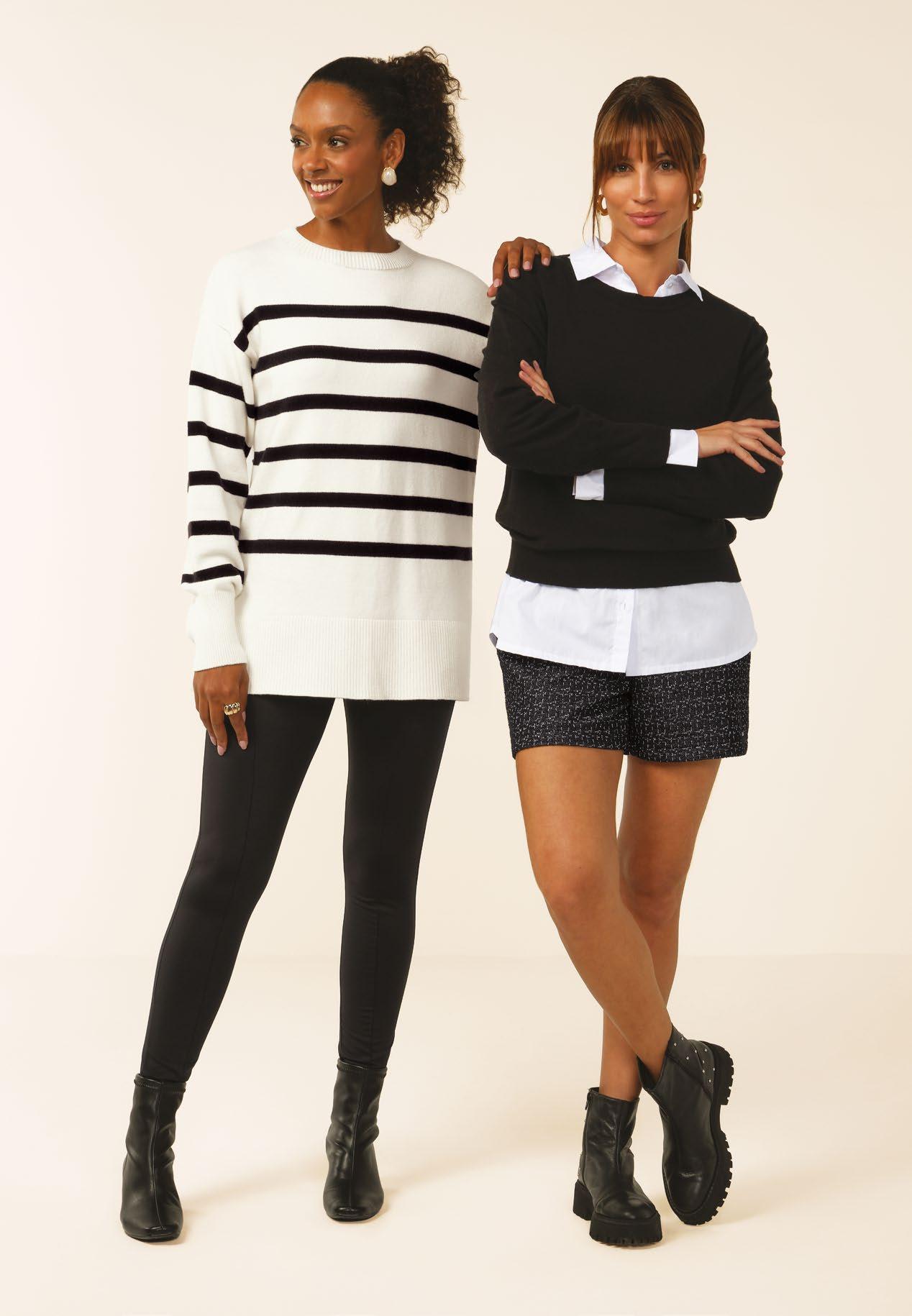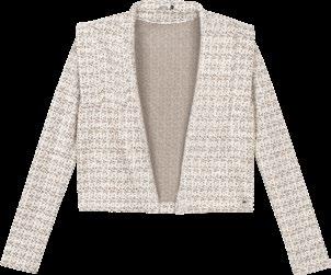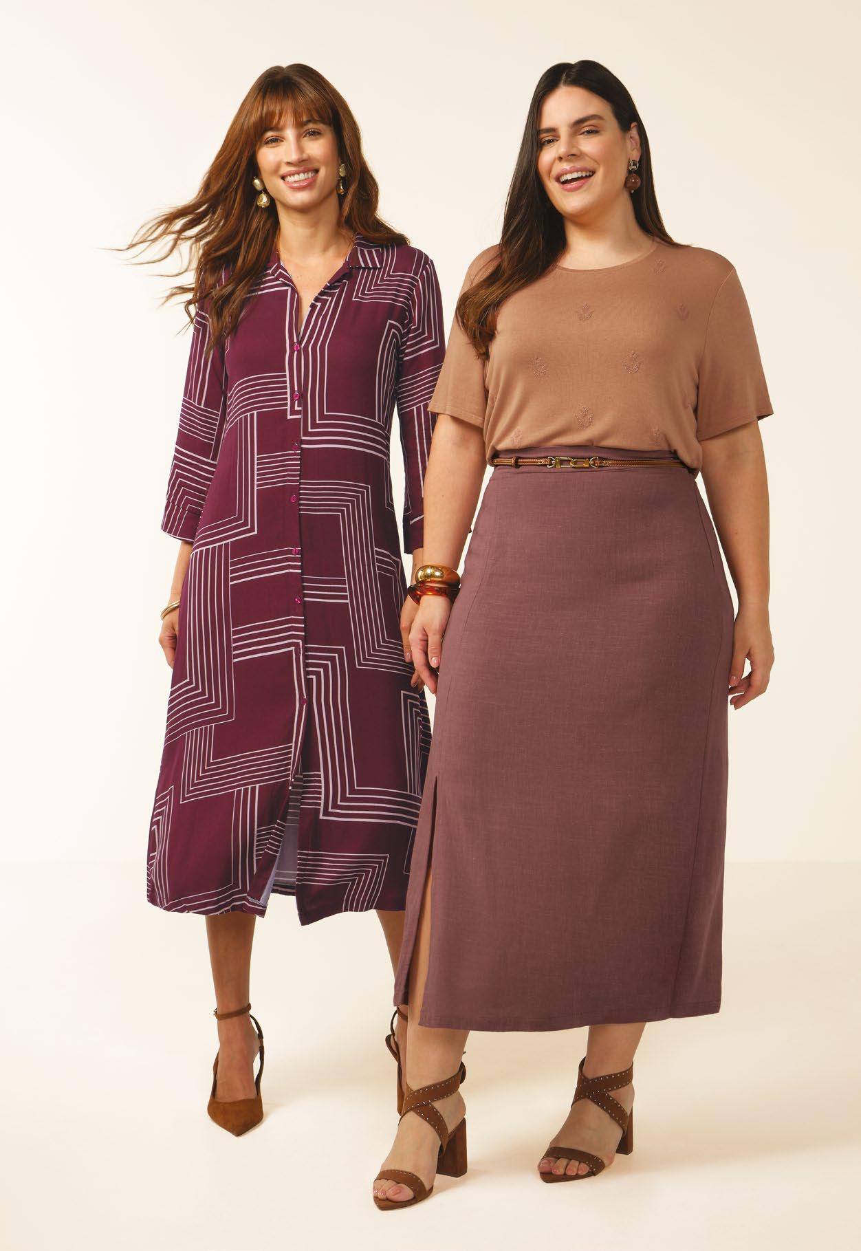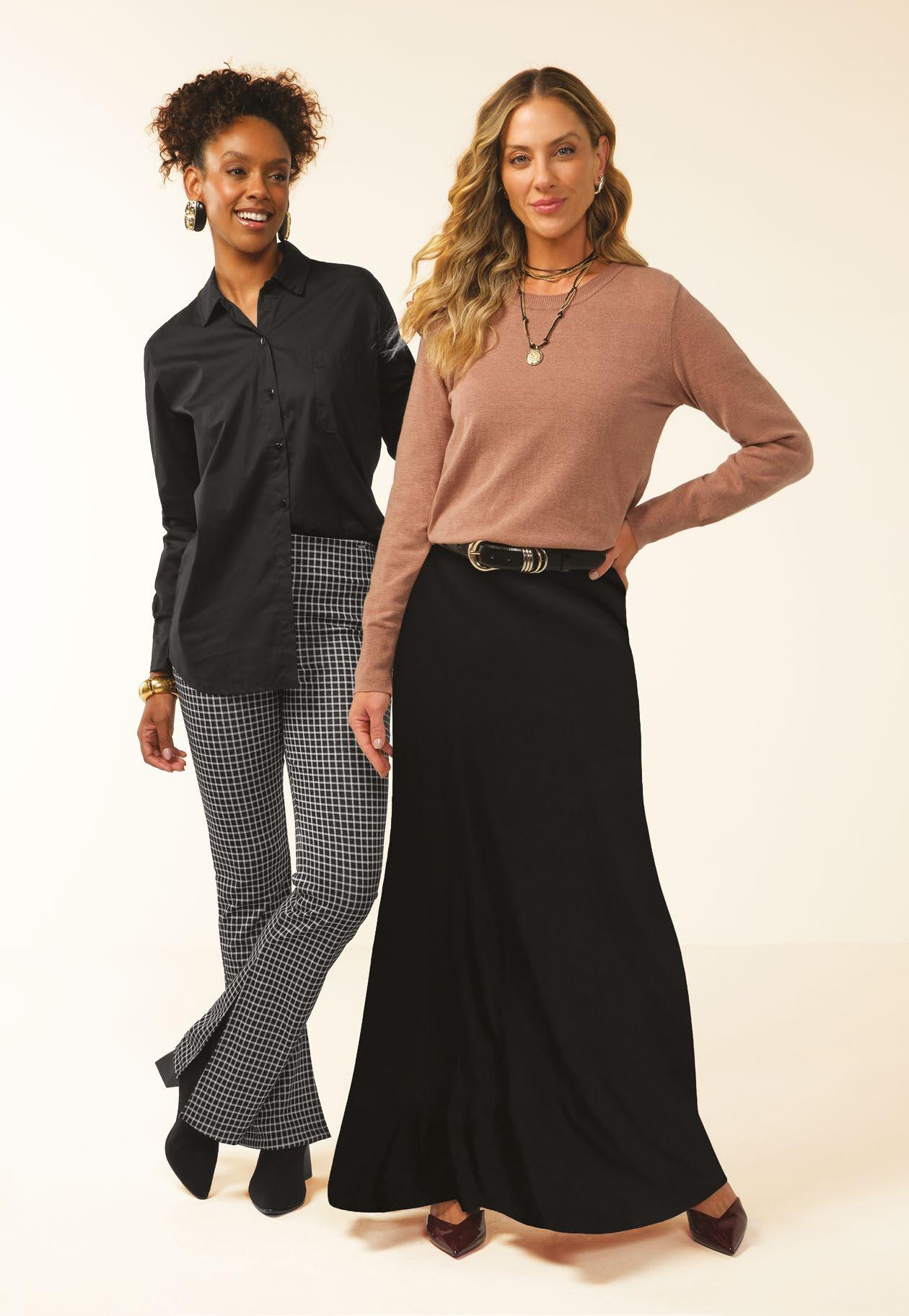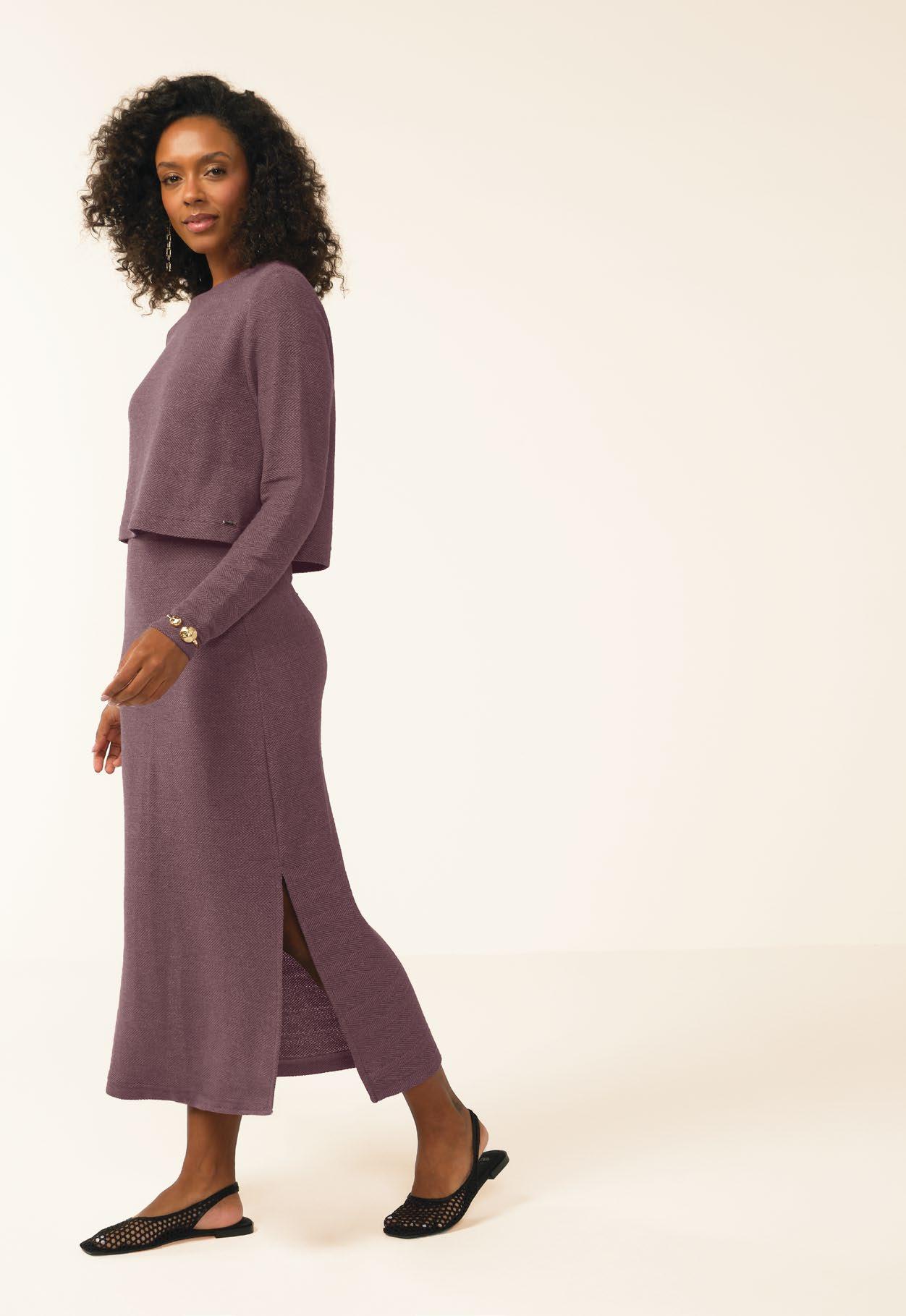 As retilíneas aparecem em golas, punhos e barra. Com textura marcada e estruturada valorizam o design e acabamentos das peças. Um toque moderno para compor looks exclusivos e diferenciados.