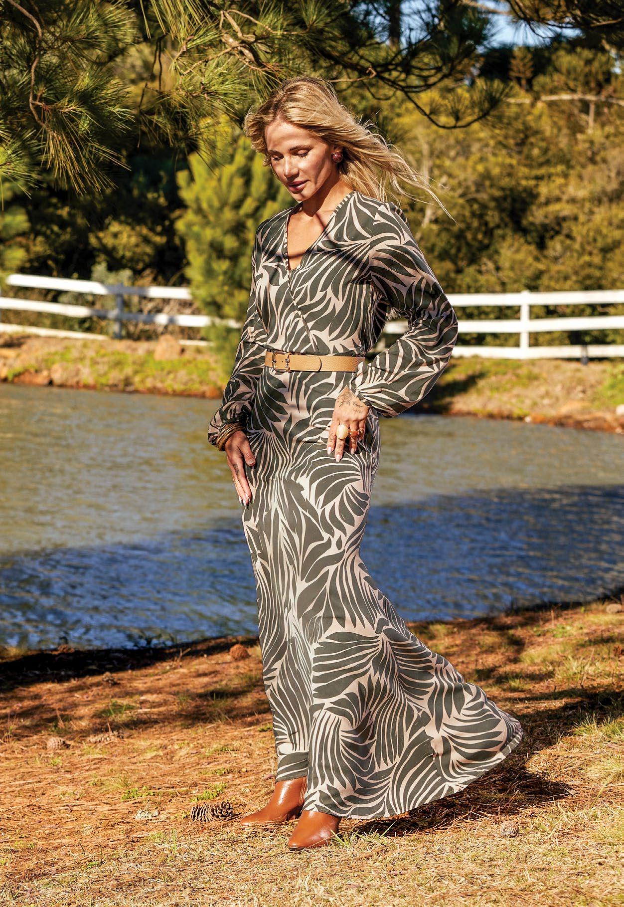 184515 Vestido em Tecido de Viscose Sarjada Estampada