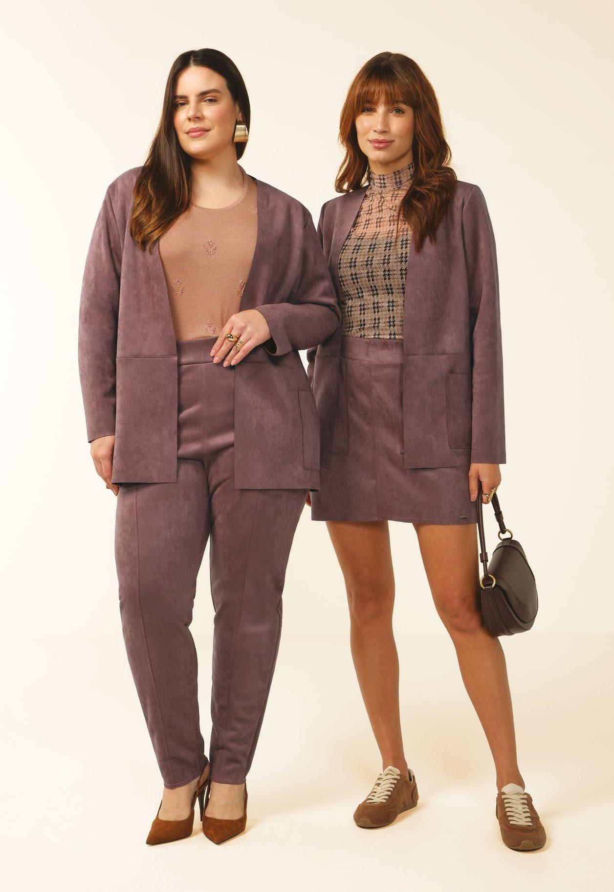 O suede vem sendo protagonista no estilo descomplicado, mostrando-se um excelente aliado para compor looks monocromáticos com um ar elegante e atemporal