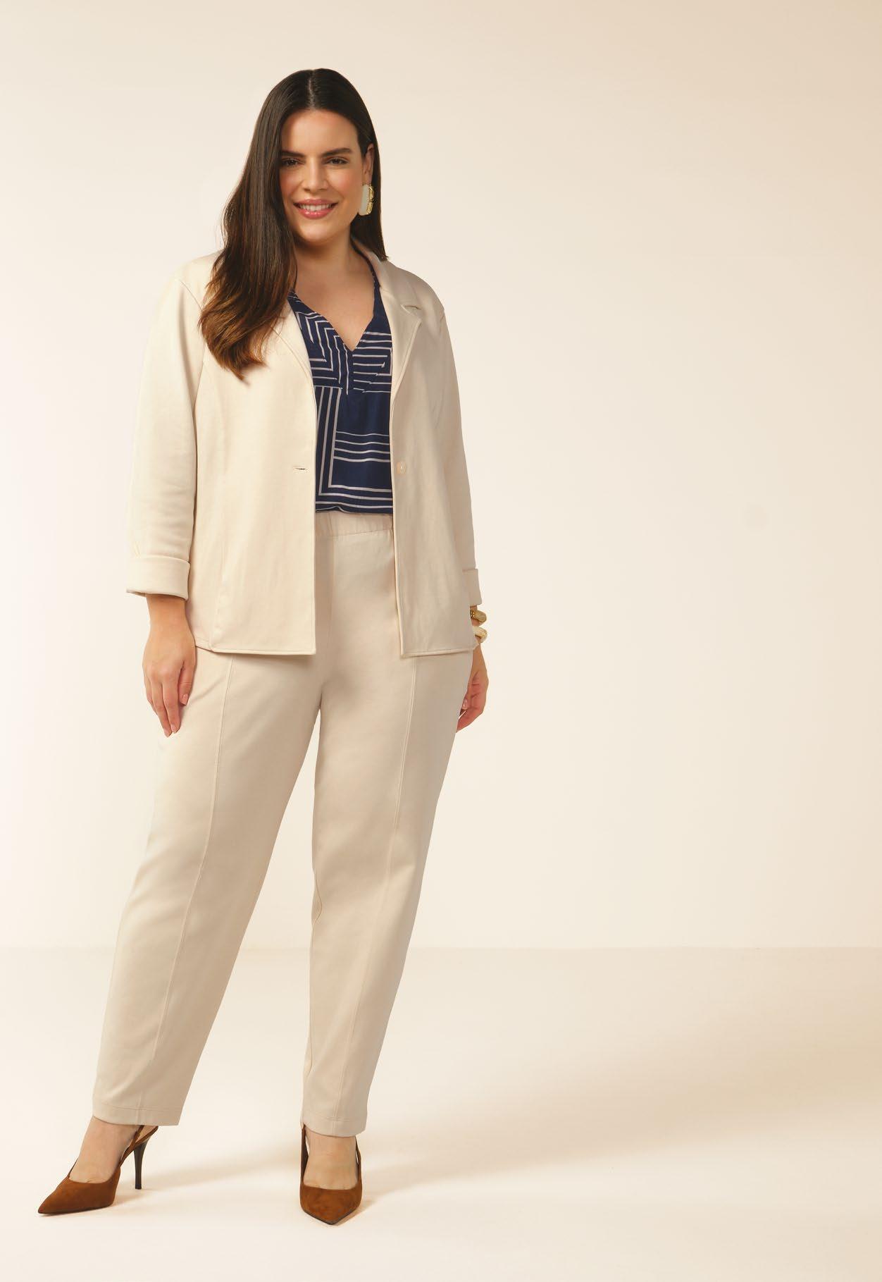 Conjunto com Blusa e Calça em Malha Linho Sarjada