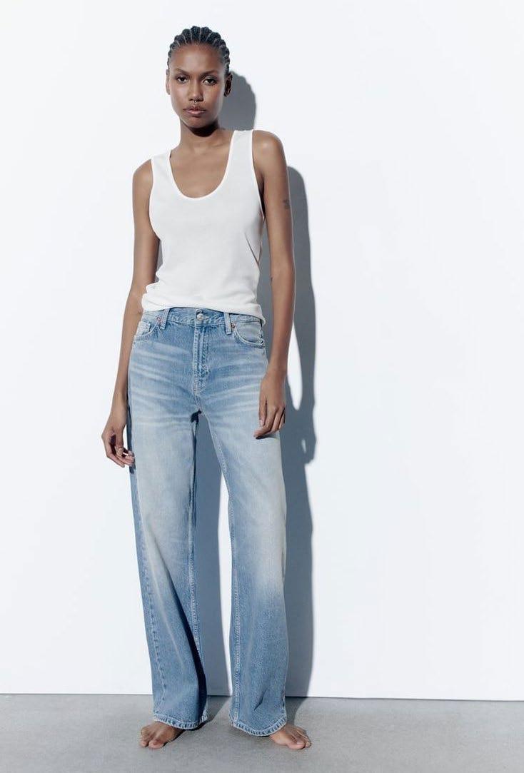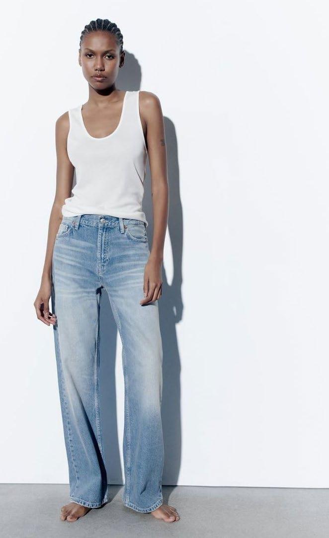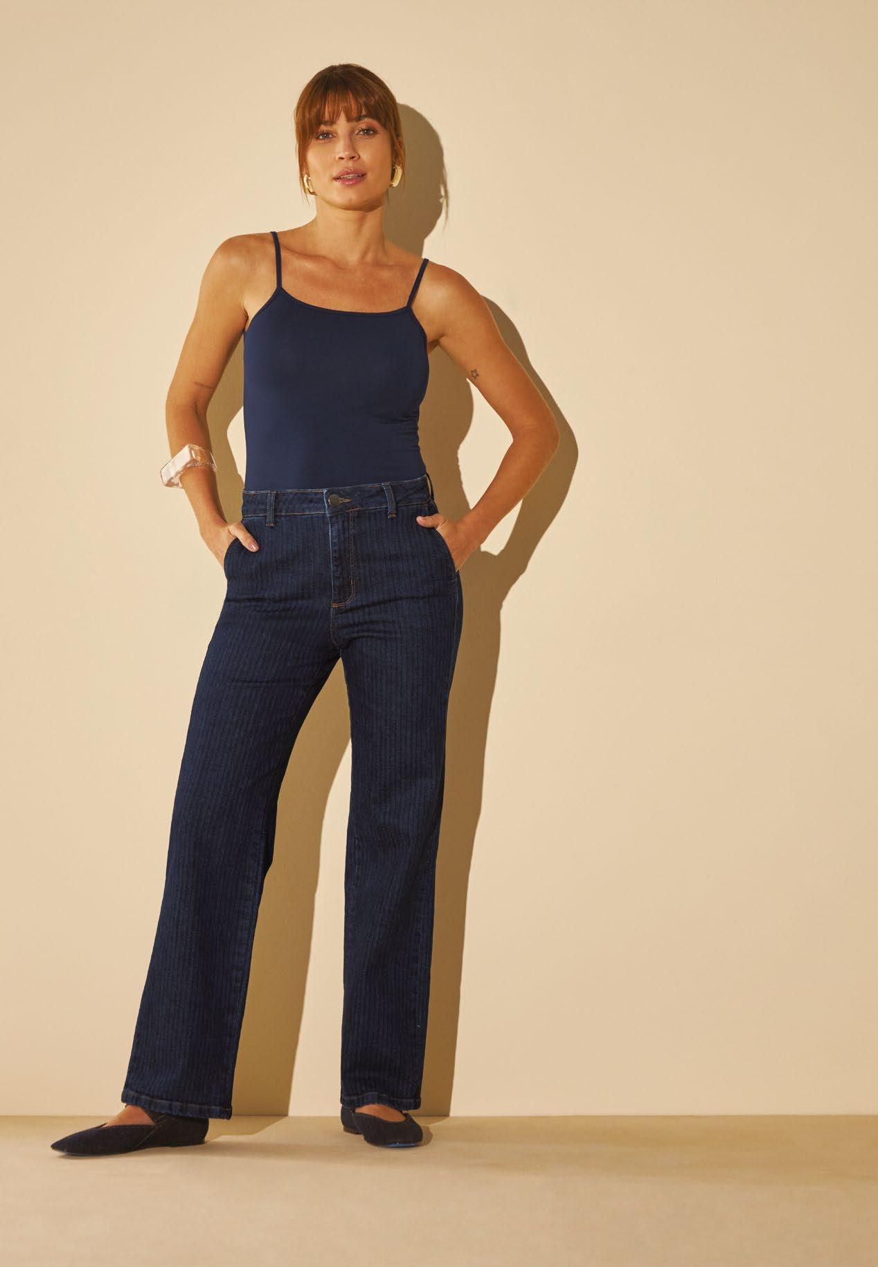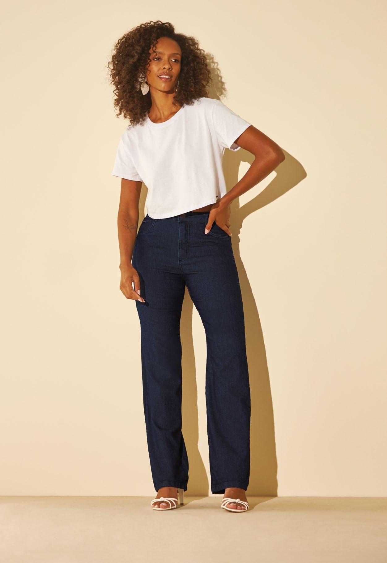 Wide Leg Denin Pants with Elastane Pantalón Wide Leg en Denin con Elastano