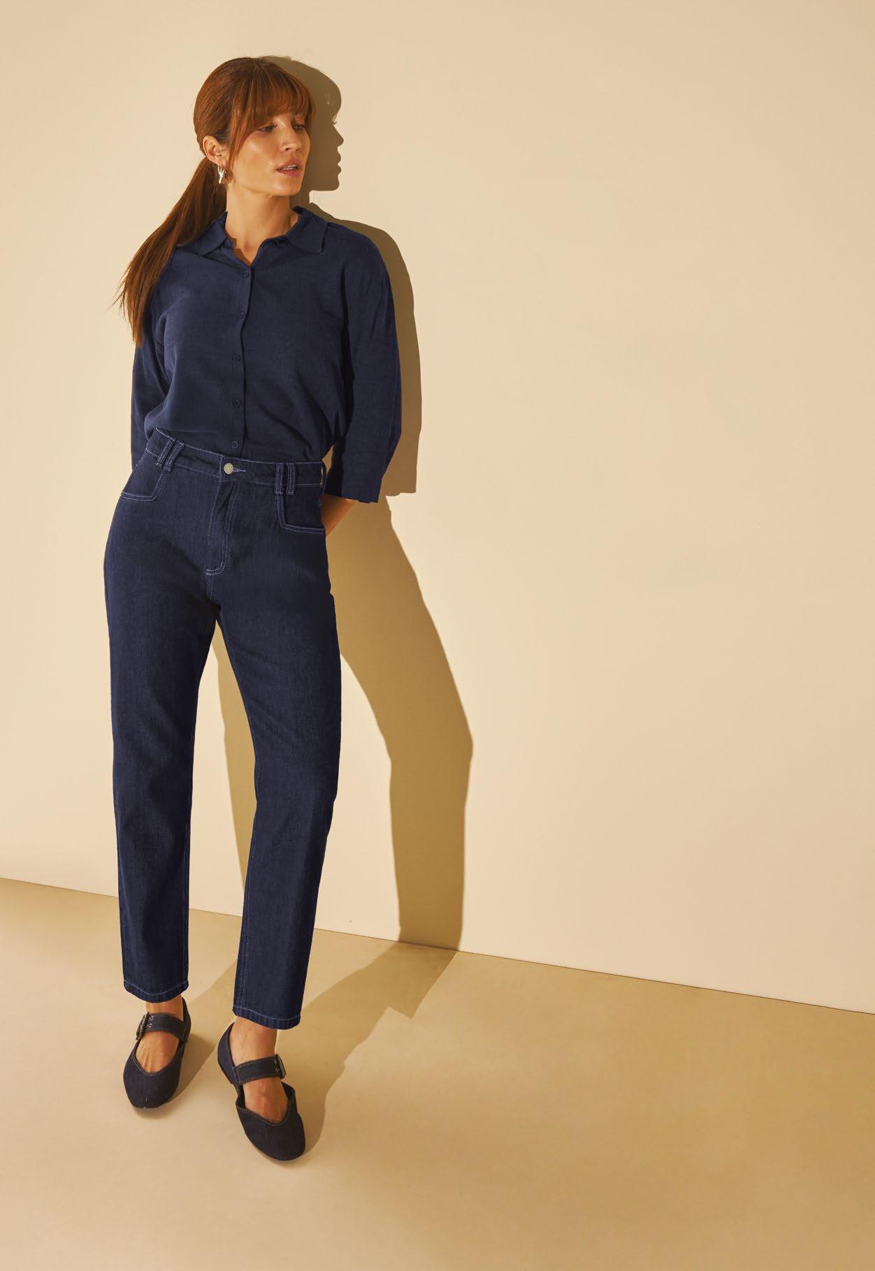 Denim Straight Pants with Elastane Pantalón Recto en Denim con Elastano