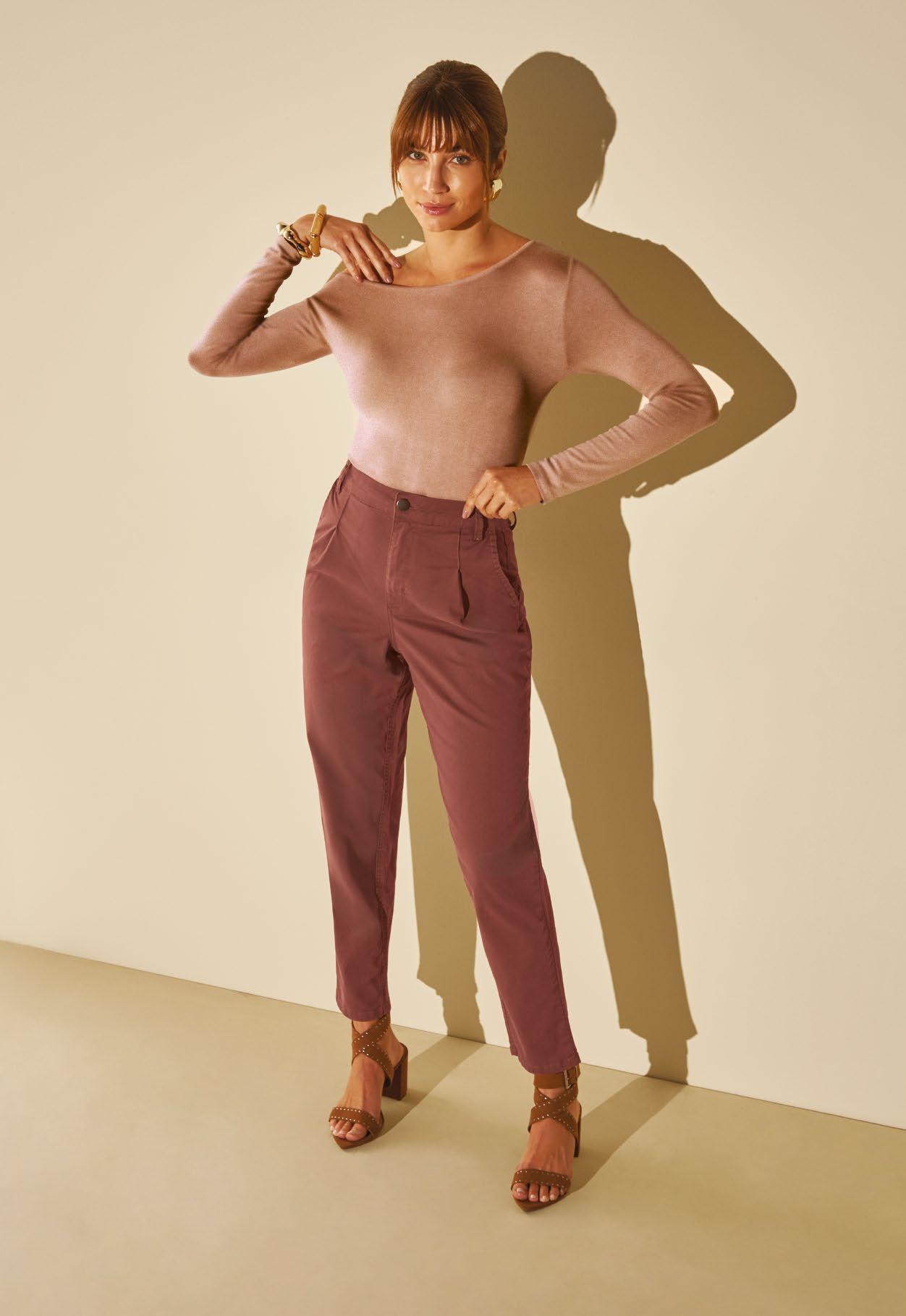 Mom Pants in Twill with Elastane Pantalón Mom en Sarga con Elastano
