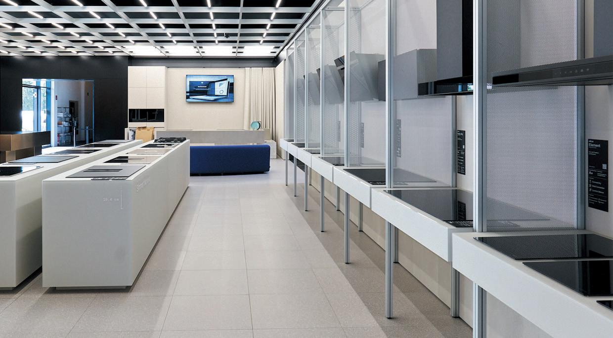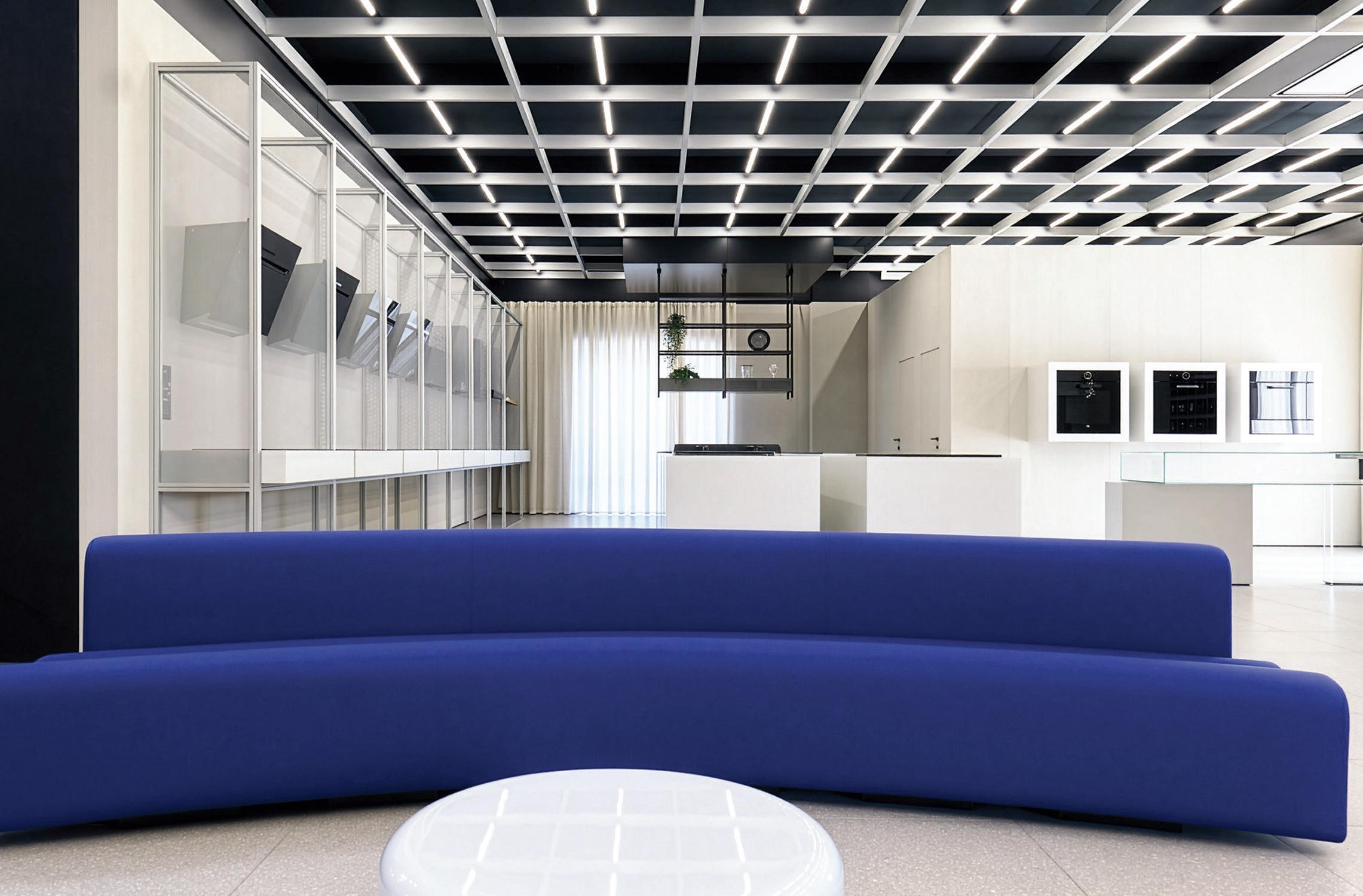 The theme of innovation in the kitchen runs through the entire project, not as a formal statement but as an experience. Technology and design combine to form a language that is immediately readable. Some moments focus on specific themes. There are six dedicated areas exploring the most innovative solutions Elica has to offer. The first focuses on the new Matrix User Interface and ID Technology, the new Design by Elica induction system developed in house. This is followed by spaces that highlight the typological, functional and aesthetic innovation of the products, highlighting how easily they blend into the kitchen, the variety of functions and the beauty of the finishes.