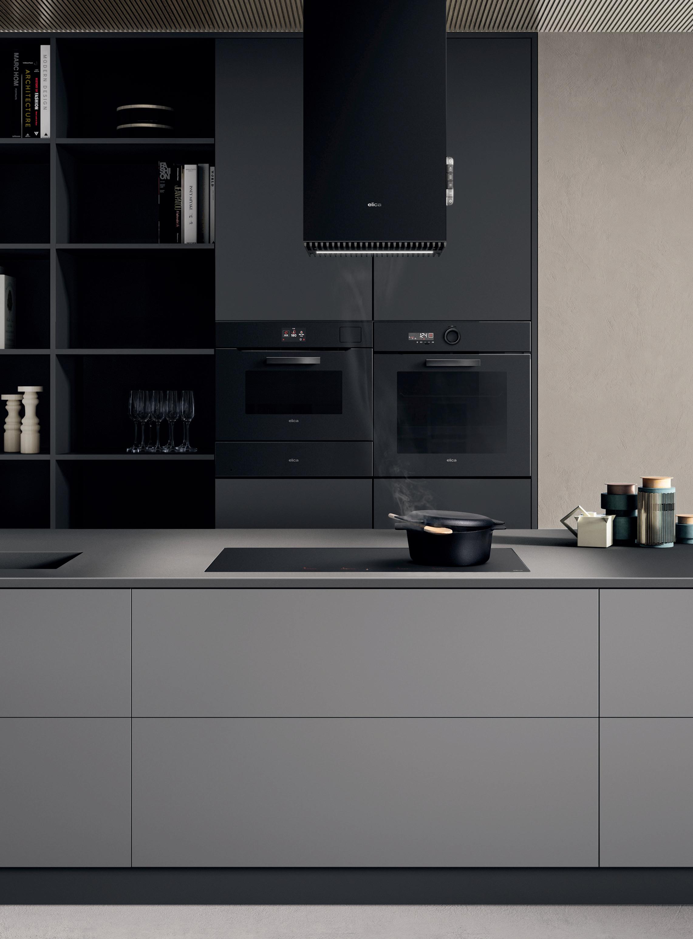 In the kitchen too: no longer just a modern reinterpretation of the ancient hearth, but a place for gathering, sharing and entertaining. Today the kitchen has become the new living space, where we navigate ingredients and cooktops while chatting with family and friends, listening to music or watching TV. Today the kitchen is the space where the boundaries between design and function, culinary art and technology, innovation and intuitiveness are finally breaking down. Extraordinary Cooking thus becomes a renewed source of inspiration for all Elica products, designed to unlock ideas, connections and creativity in every kitchen and in every cooking experience.