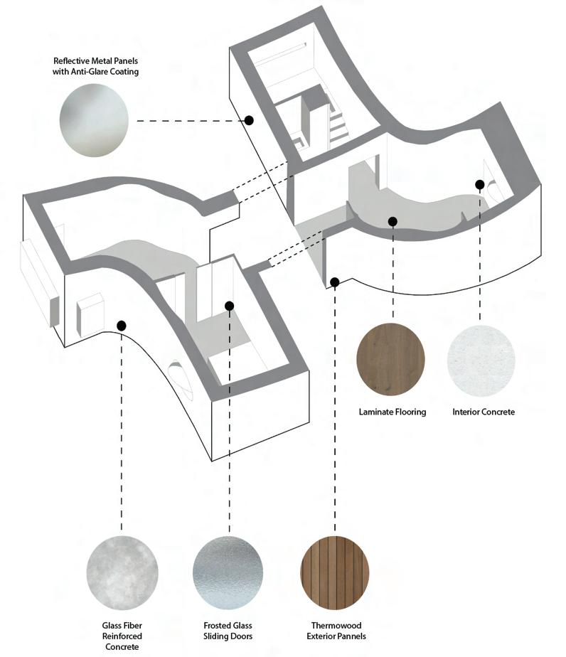 My project was developed on-site at the Lost Villages Museum. The task was to design four artist residences, including one fully accessible, all within a 28-square-meter space. The concept, Reflecting the Past and Warping the Present, draws inspiration from the history of the water and the submerged villages. The architecture uses deformation and reflection through walls, interior partitions, and roofs to create a unique spatial experience for the artists.