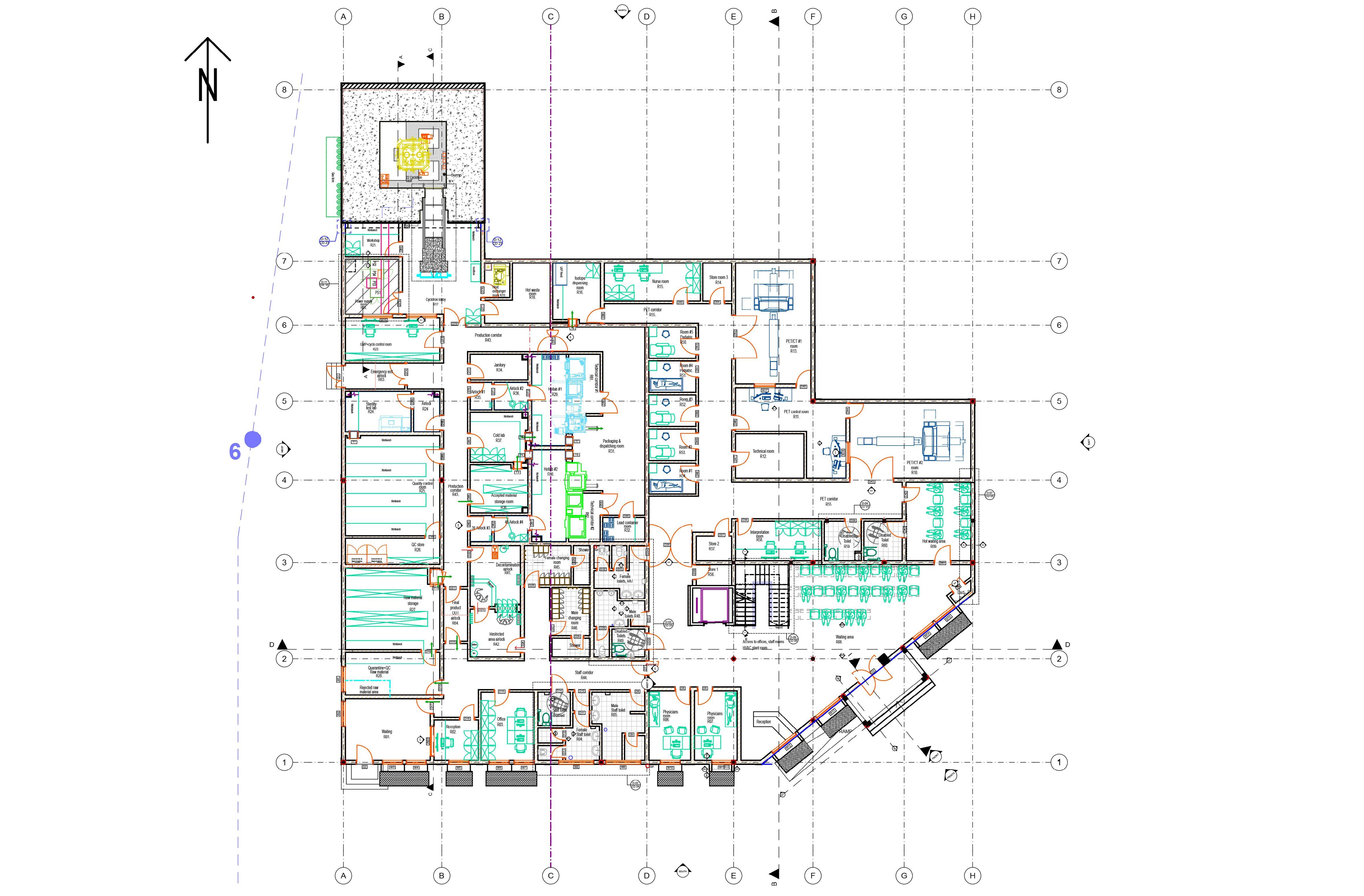 The project involved developing detailed construction drawings for a proposed PET-CT scan building within the Ocean Road Cancer Institute. The design required meticulous attention to the specifics of the PET scan room, ensuring sensitivity to radiation shielding, the integration of specialized medical equipment, and compliance with hospital safety standards. Key considerations included determining room dimensions, openings, and materials.