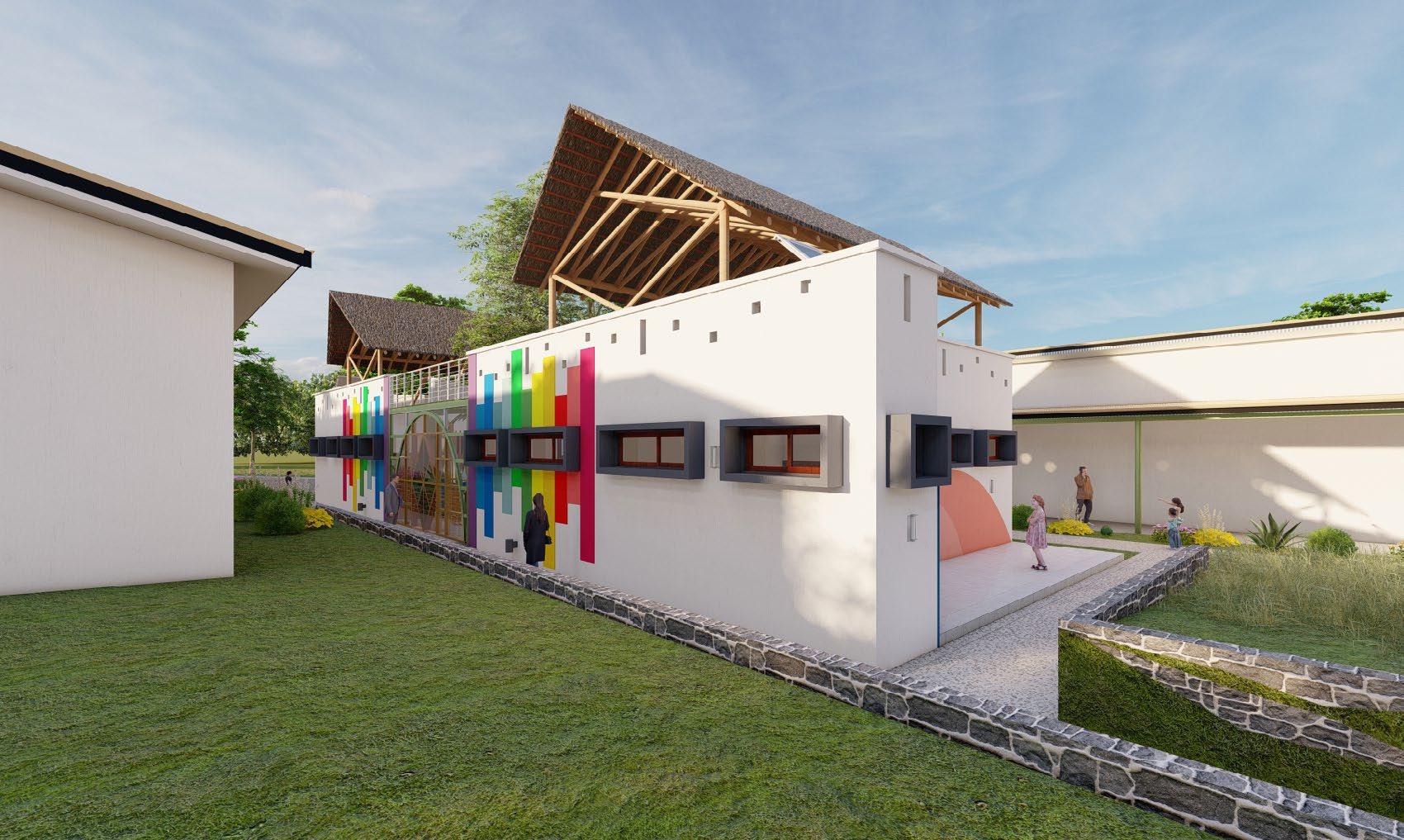 Throughout the design process, the concept underwent multiple iterations, refining aspects of space, architecture, and aesthetics. The use of steel, wood, and concrete was deliberate, allowing for the creation of playful shapes that echo the school’s existing architecture. This combination of materials not only contributes to the building’s structural integrity but also aligns with the school’s identity, creating a cohesive and inspiring environment for young learners.