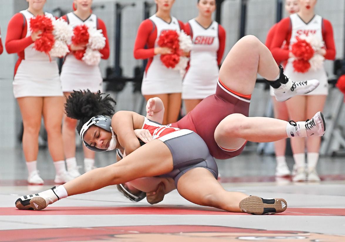 Sacred Heart University wrestler Jacklyn Smith. (Greg Vasil photo) At Columbia University, women’s wrestling is a club sport for athletes like Chelsea Marcelle. (Emma Randall photo)