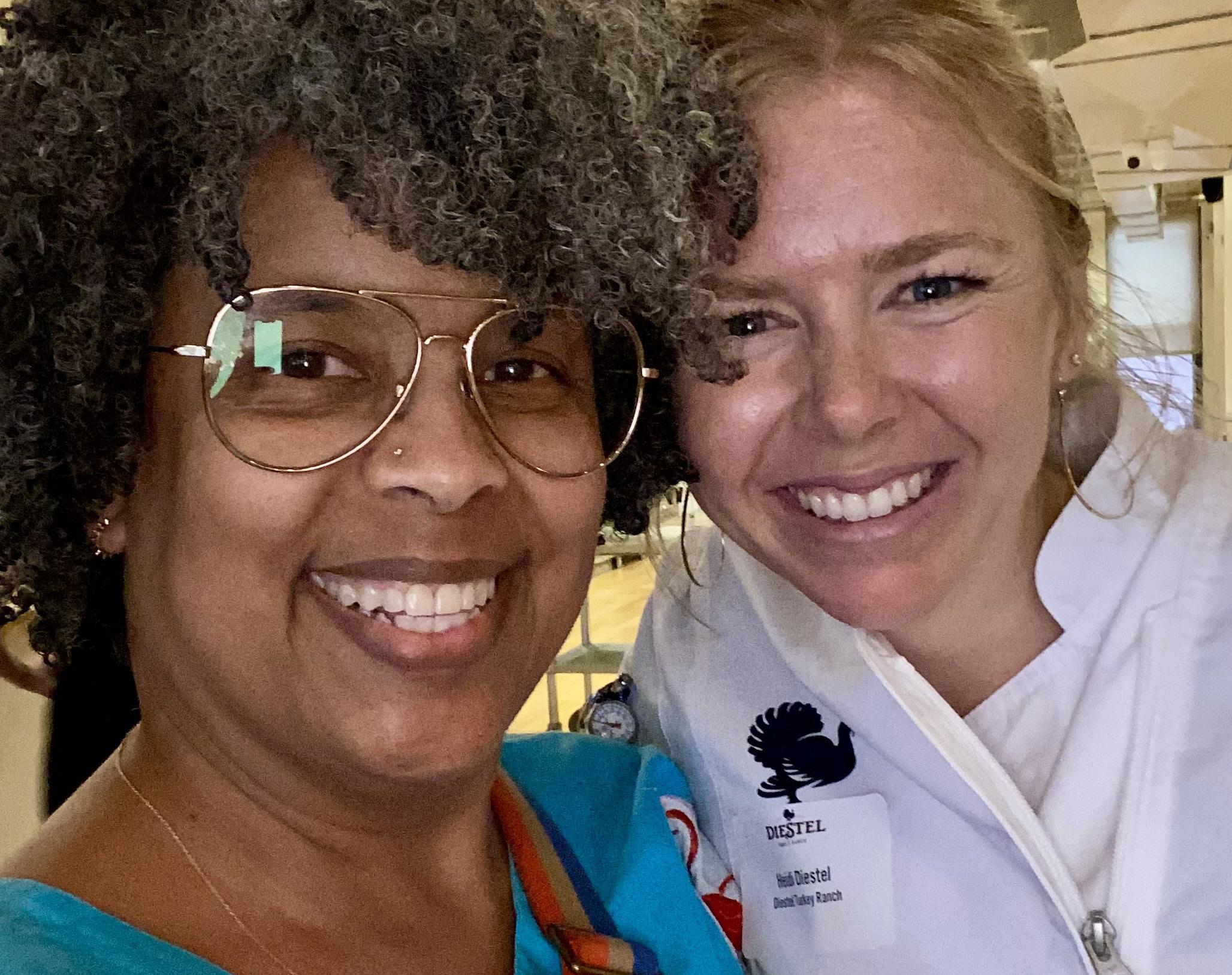 Brooklyn Branch NAACP President L. Joy Williams (left) with firsttime voter Elijah Reddick (right) across the street from Weeksville Heritage Center on Oct. 26 (Ariama C. Long photo)