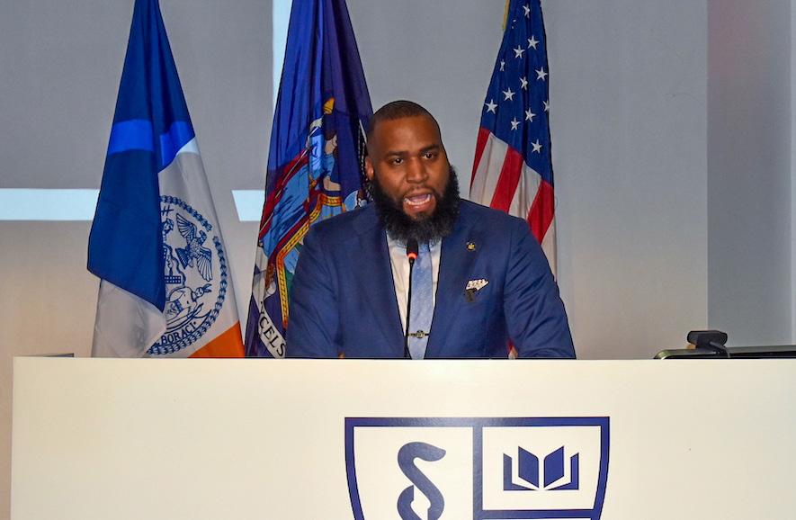 NYC Comptroller Mark Levine speaks at Harlem’s House of Justice. (Ayman Siam/Office of NYC Comptroller photo)