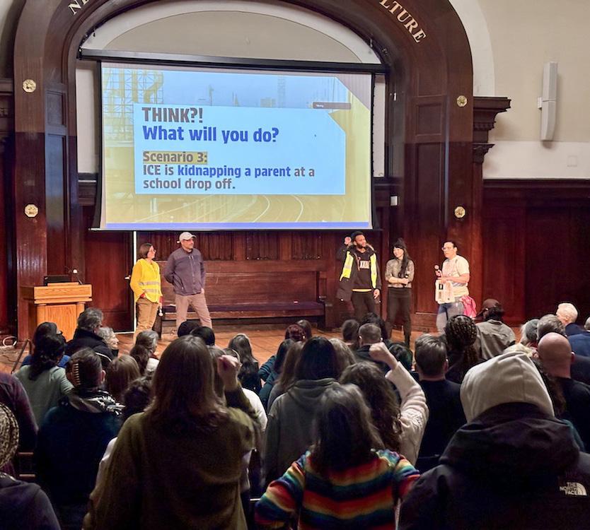 Hands Off NYC coalition holds massive Know Your Rights training at New York Society for Ethical Culture in Manhattan on Saturday, Jan. 31, 2026. (Ariama C. Long photo)