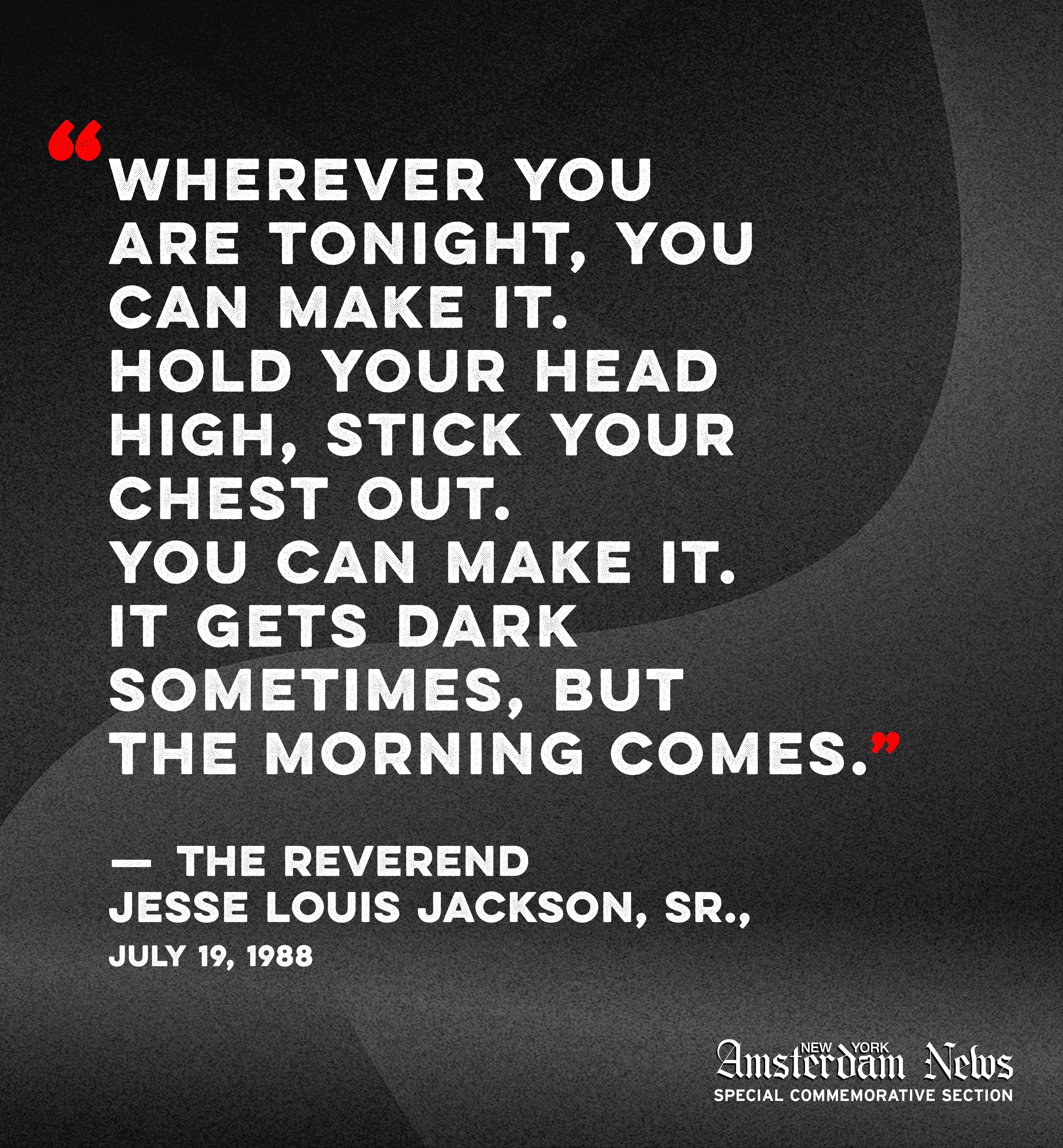 “Rev. Jackson’s electrifying presidential campaign in 1988 changed the course of history in America,” Dr. Ron Daniels, who served as Jackson’s deputy campaign manager that year, told the Amsterdam News.
