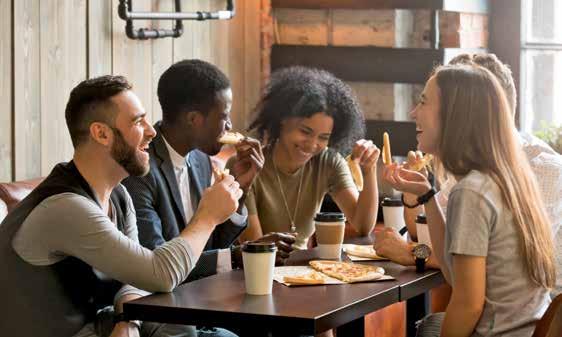 Compare and contrast the photographs below and say why the people have decided to eat in these places.