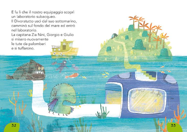 Il libro racconta… di uno strambo e divertente equipaggio composto dalla capitana Zia Nini, Giorgio l’orsetto e Giulio il pinguino che un giorno viene chiamato per catturare il Divoratutto. Di lui sanno che è un mostro marino, è verde, è molto puzzolente e fa una grandissima paura. Così i tre amici partono per mare e alla fine riescono a trovare il mostro che nasconde però una bella sorpresa. Una storia sull’inquinamento per insegnare ai bambini a prendersi cura dell’ambiente in cui viviamo.