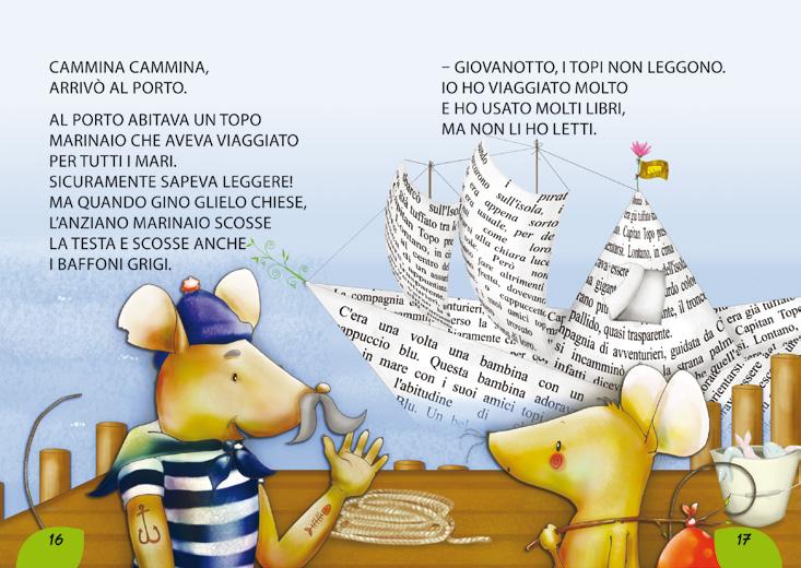 Il libro racconta… la storia del topino Gino che vuole imparare a leggere per conoscere le magiche storie contenute nei libri. Ma, si sa... i topi non sanno leggere e il nostro amico dovrà affrontare un lungo viaggio e molte avventure per trovare qualcuno che glielo insegni. Alla fine, però, riuscirà nel suo intento e i libri diventeranno tutto il suo fantastico mondo.