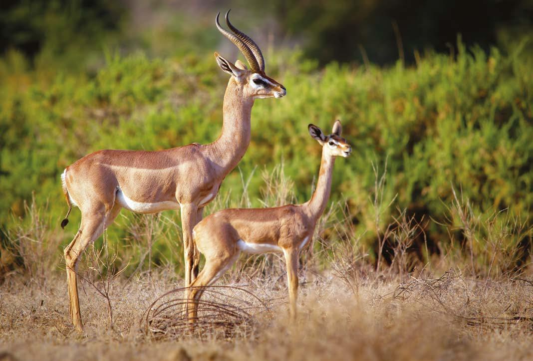 Su nombre científico* es Lithocranius walleri, pero también se la conoce como gerenuk, que en somalí* significa “con el cuello de jirafa”.