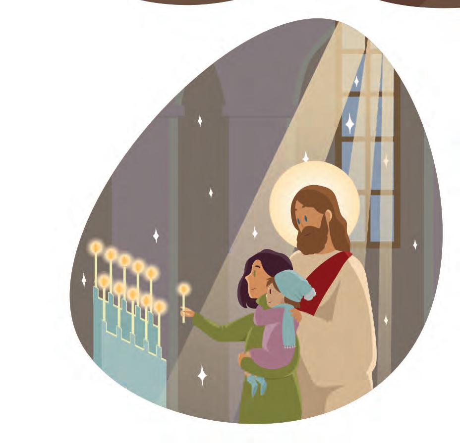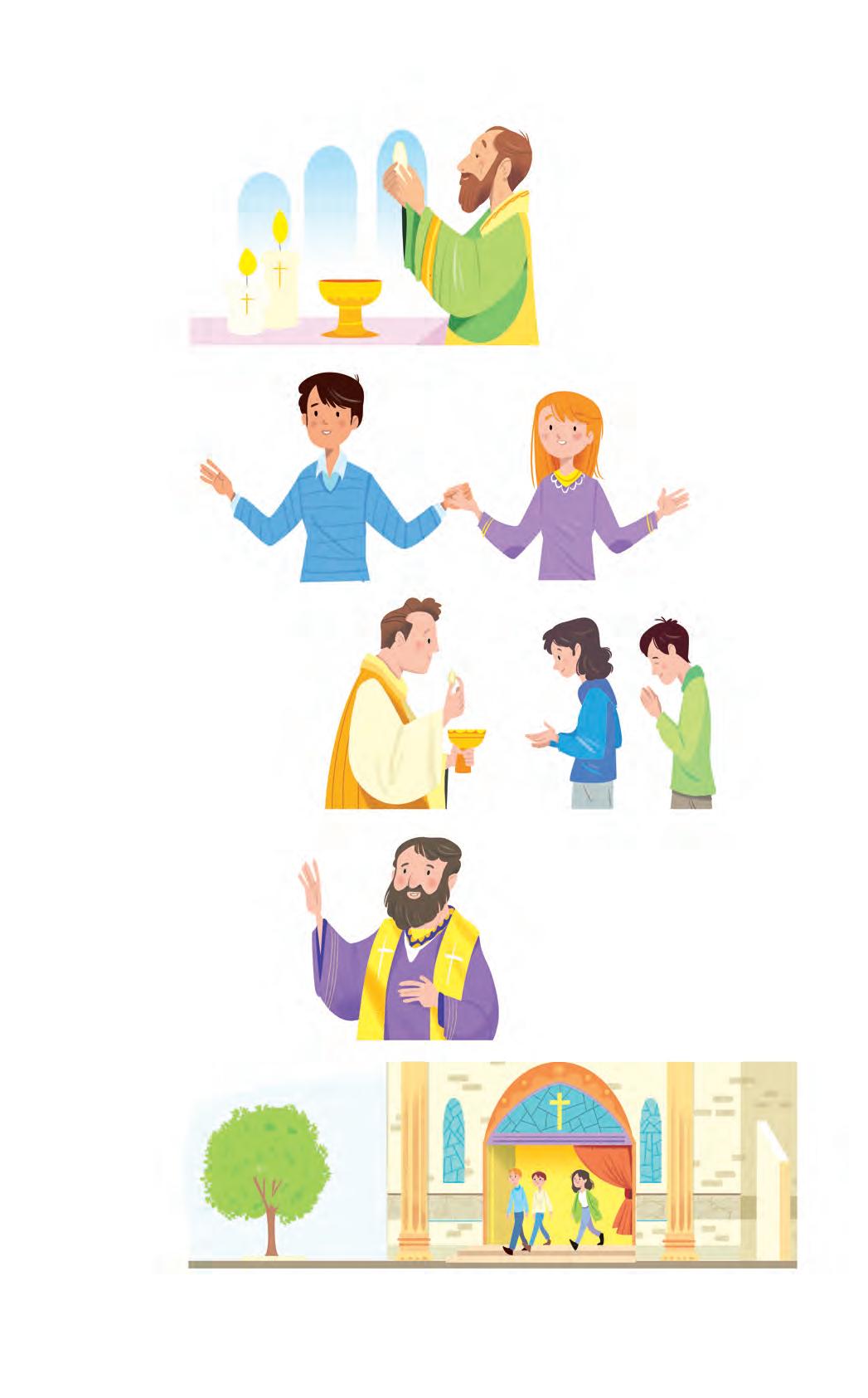 Scegl i tre fra le parole che ricordano le cose che hai imparato l’anno scorso nell’ora di Religione. Realizza un disegno e scrivi, accanto, di cosa si tratta.