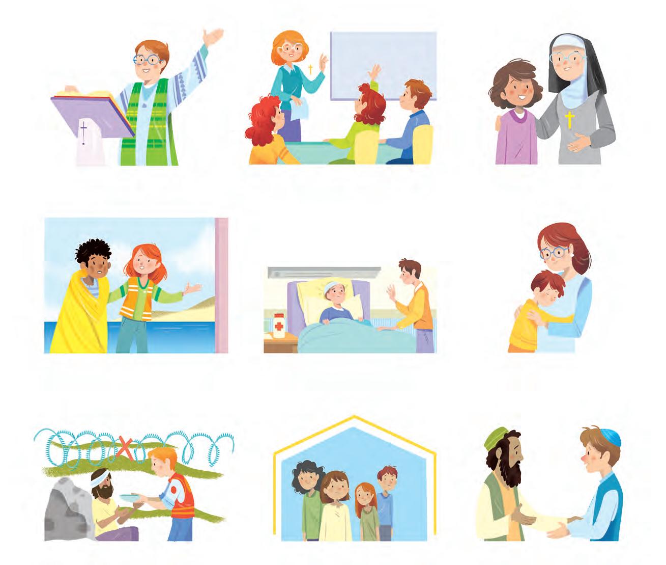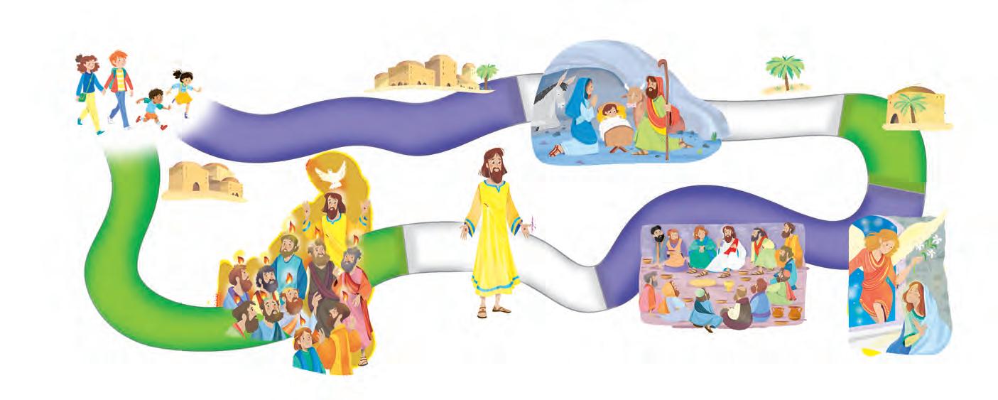 MONDO Il “Messia” atteso 38 Chi aspettavano gli ebrei? 39 Tutti attendono ancora una grande novità 40 A contatto con il mondo 41 Quando è difficile andare d’accordo! 42 Tra litigi e conflitti 43 La sfida del “bene comune” 44 Cosa bisognerebbe fare… 45 L’attesa del “Dio con noi” oggi 46 I segni di un’attesa 47 L’annuncio della nascita di Gesù 48 Un’attesa giunta al termine 49 Maria ringrazia Dio 50 Il testo del “Magnificat” 51 La nascita di Gesù: ecco il “Messia”! 52 Buon Natale a te! 53 MAPPA 54 VERIFICA 55 GESÙ PROFETA DI PACE Gesù: un personaggio della storia 56 Così sapranno che c’ero! 57 I Vangeli parlano di Gesù 58 Ti racconto una cosa bella 59 Un solo “Vangelo” e quattro Vangeli diversi 60 Differenze tra Vangeli 61 I Vangeli dell’infanzia 62 Un bambino “titolato” 63 Gesù comincia la sua predicazione 64 Good news per voi! 65 Gesù e le Beatitudini 66 Dalla parte delle Beatitudini 67 Per Gesù Dio è il “padre di tutti” 68 Nessuno è escluso 69 Gesù insegna a scoprire i doni del Padre 70 Un mondo bellissimo 71 Un dono per tutti 72 Un mondo senza povertà 73 Gesù insegna la via dell’amore 74 La civiltà dell’amore 76 Per essere felici 77 Gesù annuncia il perdono di Dio 78 La vera grandezza 80 Cosa significa essere grandi? 81 I miracoli: la forza dell’amore di Gesù 82 L’amore di Gesù è più forte della morte 84 Un miracolo che non si può dimenticare 85 I molti amici di Gesù e i “dodici” 86 Essere uno dei dodici 87 La prima missione dei discepoli di Gesù 88 Una missione anche per me 89 La casa sulla roccia 90 Gesù e i suoi “familiari” 91 Ma chi è Gesù? 92 Chi era Giovanni il Battista? 93 I “nemici” di Gesù 94 Persone da trattare con… amore! 95 MAPPA 96 VERIFICA 97 GESÙ LIBERA GLI UOMINI DALLA PAURA Gli ultimi giorni: Gesù si offre per amore 98 Perché Gesù è morto in croce? 100 La storia di Padre Kolbe 101 Il mattino di Pasqua: Gesù è vivo! 102 L’arte racconta la risurrezione 103 I discepoli e Gesù risorto 104 Una storia di riconoscimento 105 Una promessa e un comando 106 Una missione importante 107 La Pentecoste: lo Spirito sui discepoli 108 I simboli dello Spirito Santo 109 MAPPA 110 VERIFICA 111
