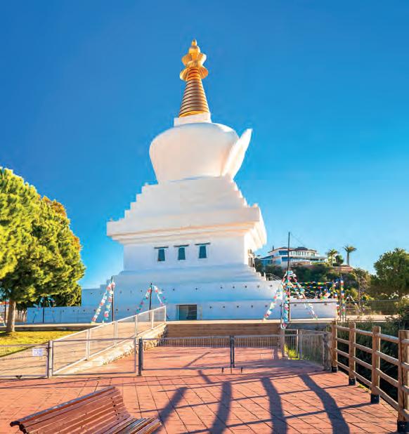 I luoghi sacri per i buddisti sono detti stupa, in India, e pagoda, in Cina e Giappone. Nelle stupa si fanno preghiere, meditazione e studio delle parole del Buddha, di cui qui si trova una statua, per ispirare rispetto nei seguaci.