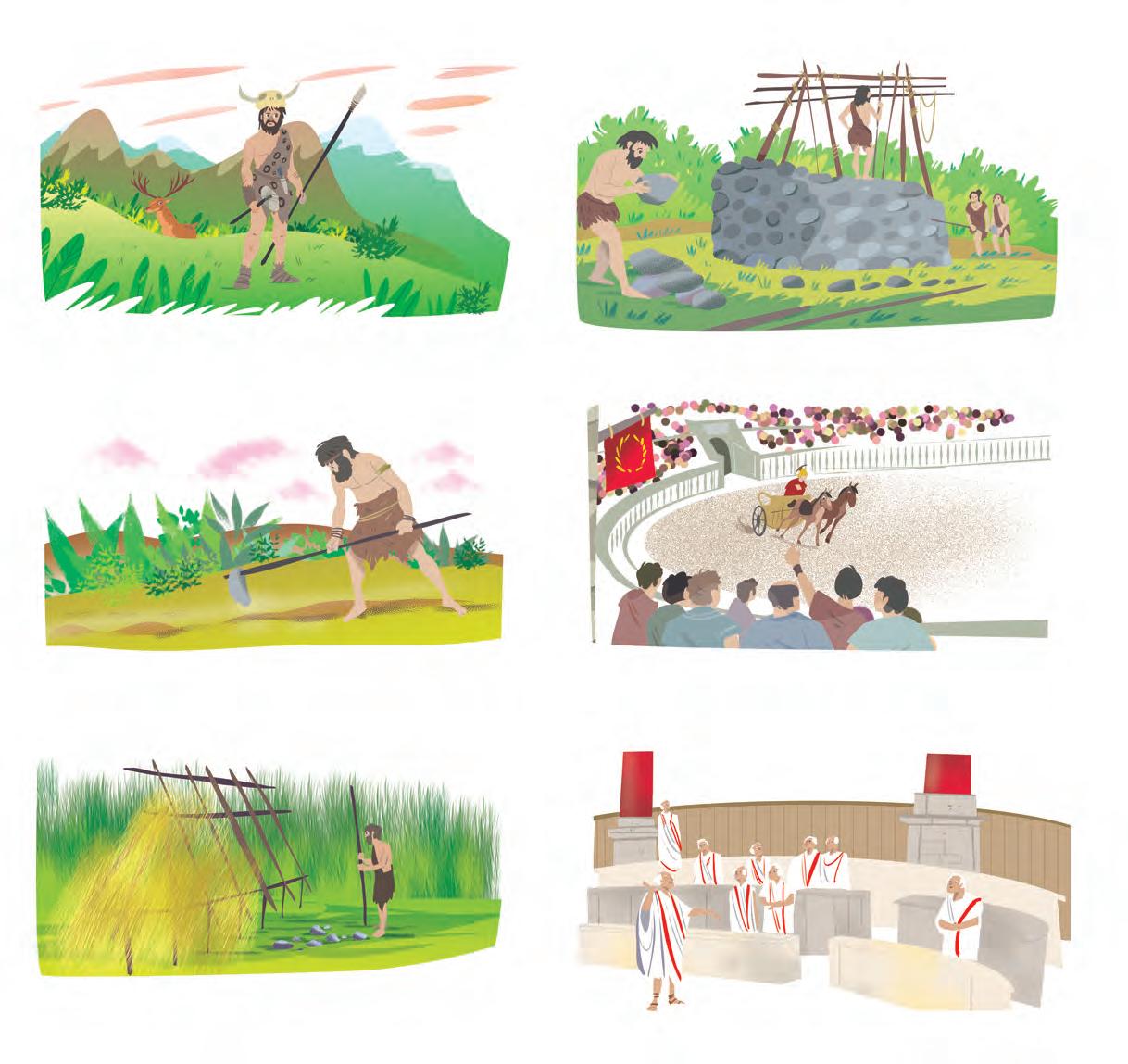 Scrivi nella pagina accanto, sotto ogni immagine, cosa ha cercato di fare l’uomo per vivere sempre meglio.