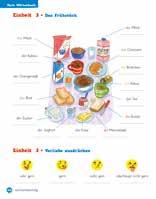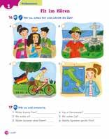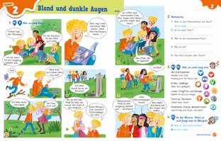 Einstieg in die Lektion mit Comics, zwei Seiten mit Aufgaben zum Textverständnis und einem Lied