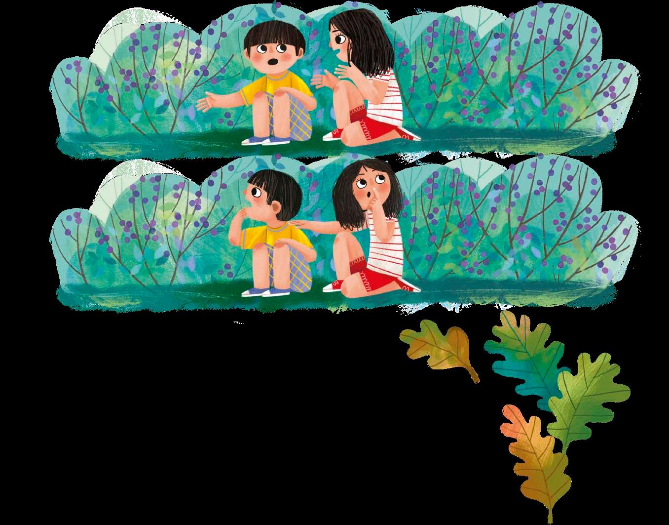 Alessia e Ricky li riconoscono: ci sono i Nidosi, con la chioma “abitata” da piccoli nidi di uccelli, i Fruttini, carichi di frutti, i Tanosi, che offrono nascondiglio a scoiattoli, ghiri, gufi e topolini, e i Fungaioli, che fanno crescere i funghi di cui si cibano gli animaletti del bosco.