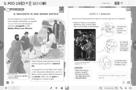 consistono, in primis, nel libro digitale sfogliabile in MODALITÀ INTERATTIVA, con numerose opzioni: lettura audio vocale del testo, possibilità di impaginazione fluida lineare per BES/DSA con font e fondini ad alta leggibilità, evidenziazione/esclusione di parti sulla pagina, annidamento di appunti (testo, immagini, link…) e molto altro.