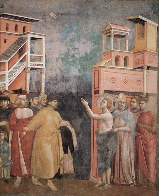 Giotto, Francesco rinuncia ai beni terreni, 1290-1295, affresco, Assisi, Basilica superiore di San Francesco.