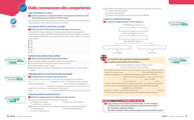 La storia non è solo un insieme di fatti: è analisi, confronto, collegamento tra cause ed effetti. Per questo, ogni unità include esercizi, mappe concettuali e laboratori dedicati alle fonti e al metodo. Attraverso queste attività si sviluppano conoscenze e competenze e si affrontano temi legati all’educazione civica, per connettere passato e presente in modo consapevole.
