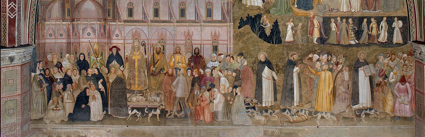 Il ciclo di affreschi Storie di San Francesco è stato realizzato da Giotto nella Basilica superiore di Assisi ed è uno dei capolavori più importanti del Medioevo. Queste pitture raccontano la vita del santo in modo semplice e diretto, comprensibile anche per chi non sapeva leggere. Rappresentano quindi una testimonianza dell’arte come strumento educativo. Giotto introduce un modo di dipingere realistico e umano. Le scene mostrano paesaggi, edifici e persone, offrendoci preziose informazioni sulla società medievale. Inoltre, vengono evidenziati i valori spirituali del Medioevo, come la povertà, l’umiltà e la fede. San Francesco è una figura centrale del periodo, e gli affreschi aiutano a capire il suo messaggio. Guardandoli oggi, possiamo entrare nel mondo medievale e comprenderne meglio la cultura, la religione e la visione dell’uomo.