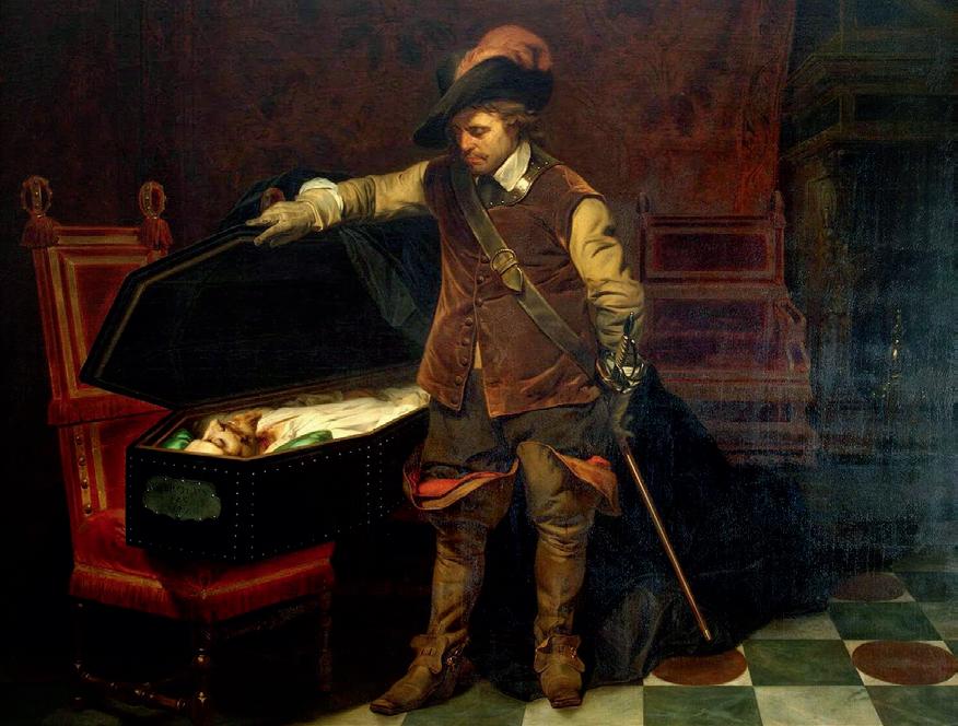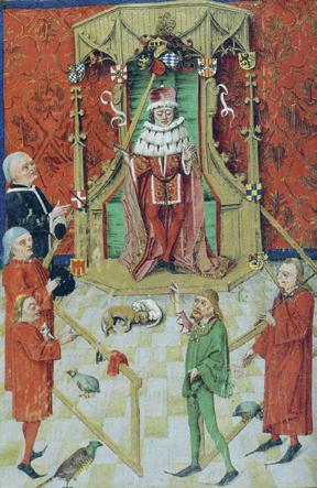 corona y gigli dorati y scarpe con tacchi y spada y ermellino y potere militare y parrucca y potere politico