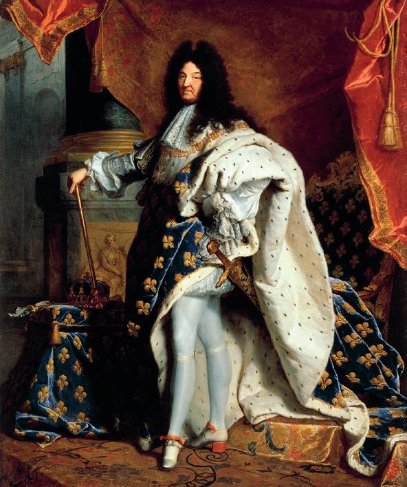 3 Nel dipinto, eseguito dal pittore di corte Giacinto Rigaud, Luigi XIV è raffigurato con tutti i simboli del suo potere. Completa i testi scrivendo le parole mancanti, che sceglierai tra quelle sotto indicate.