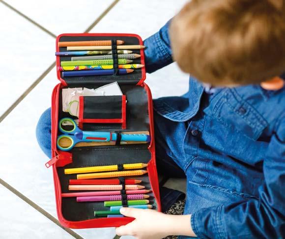 Chiedere Dov’è…? e rispondere (L’astuccio è nella cartella).