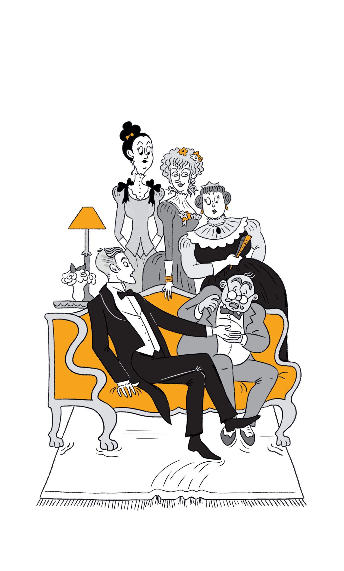āYou donāt understand. Thereās nothing wonderful about him. Heās a little fat man with no hair on his head. He wears big glasses⦠Ah, here he is! Now, Mr Podgers, please read the Duchess of Paisleyās hand.ā