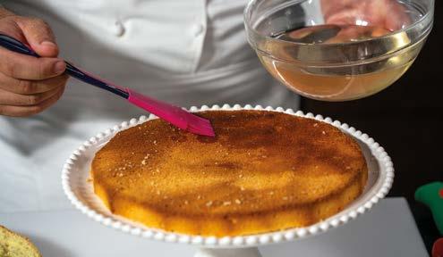 3 Farcire con la crema, disporre il pan di Spagna rimanente e inzuppare ancora.