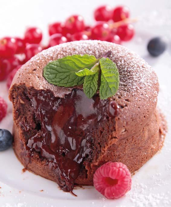 2 Amalgamare la farina e il cacao setacciati. Formare il tortino direttamente negli stampi monoporzione (90 g a porzione).